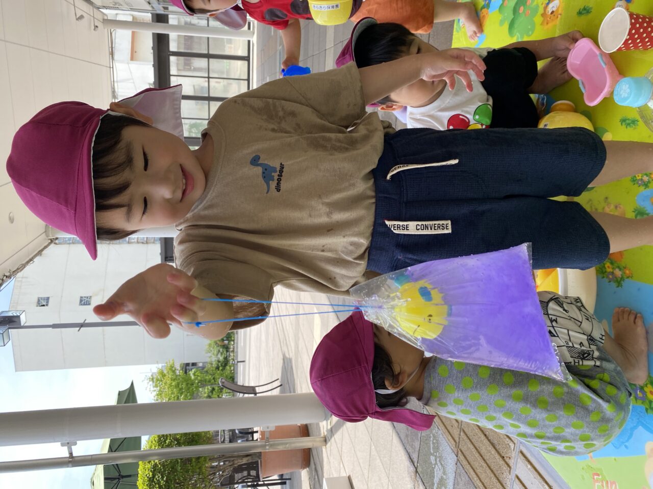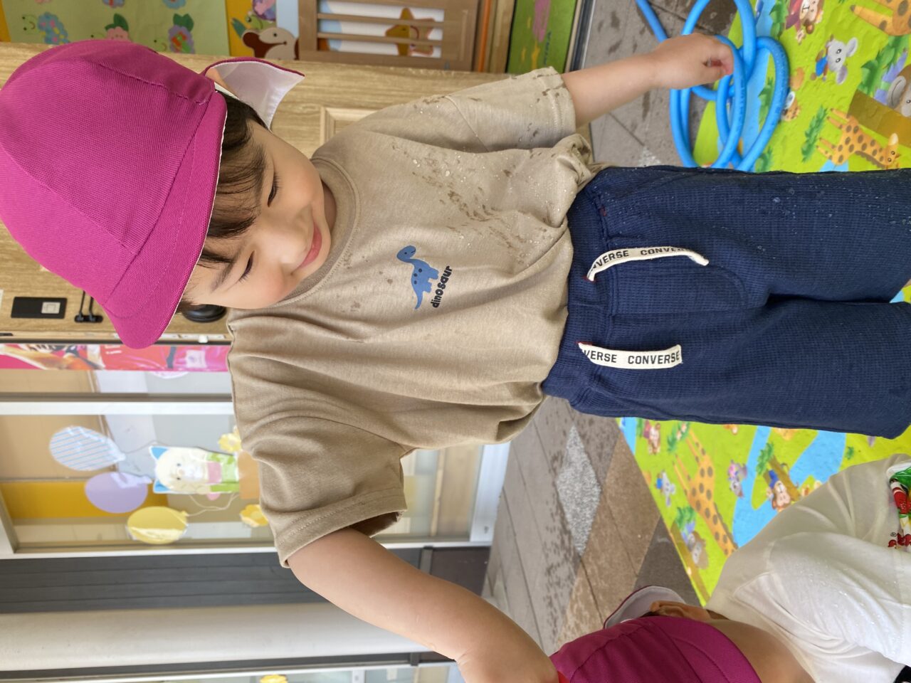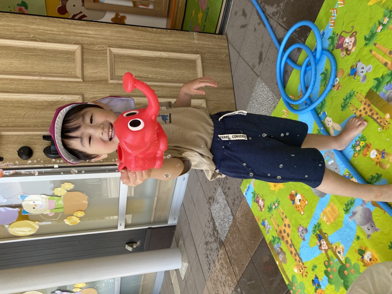 今年初の水遊びに子ども達は少し戸惑い気味のような感じもしましたが、慣れてくると夢中になって遊んでいた