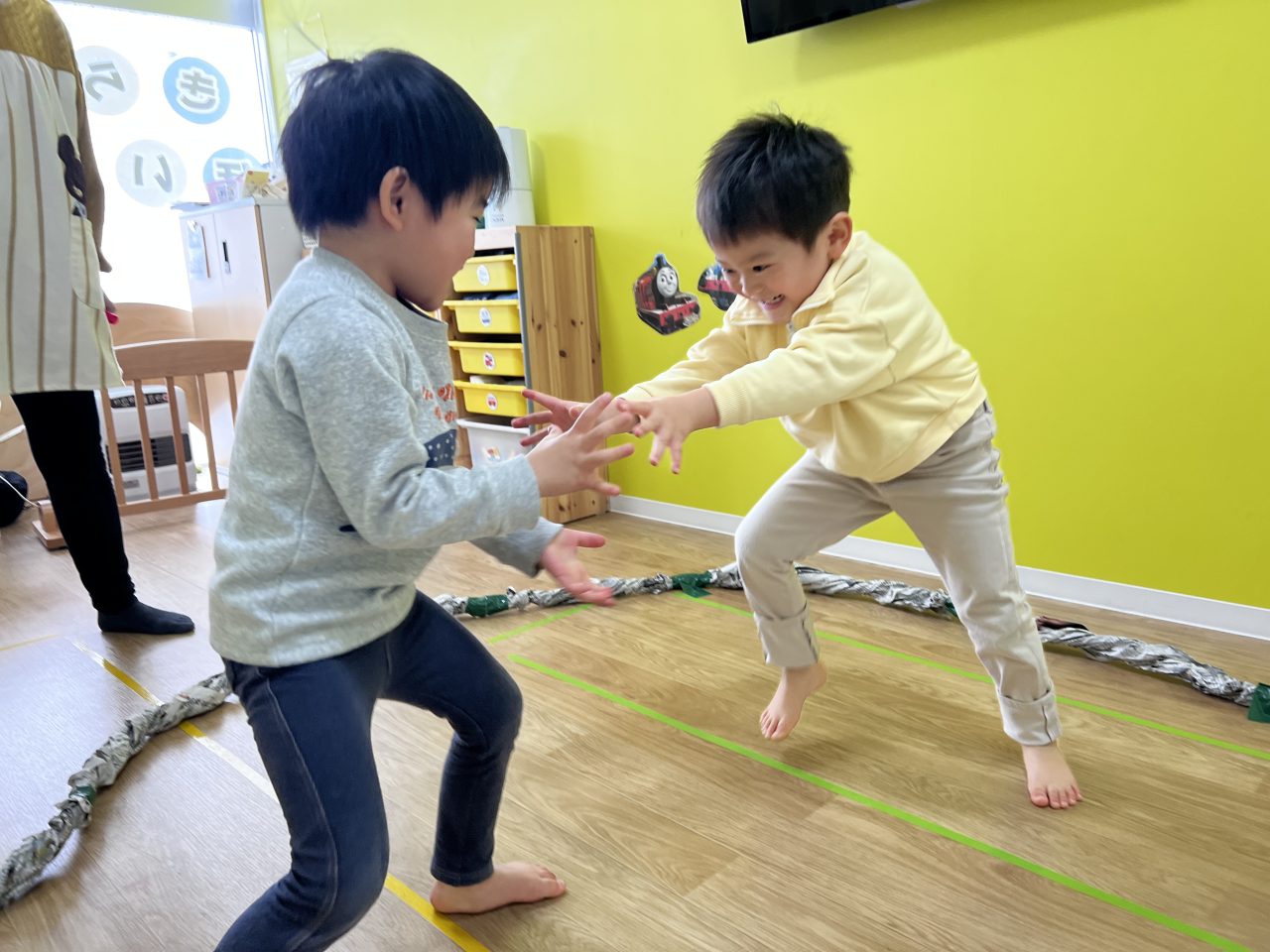 この日も室内遊びを楽しんでいた3歳児4名の愉快な仲間たち?♬笑
