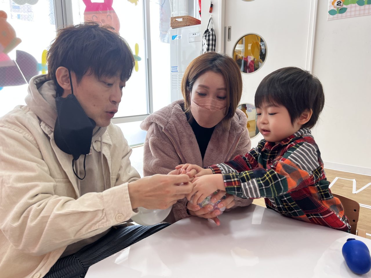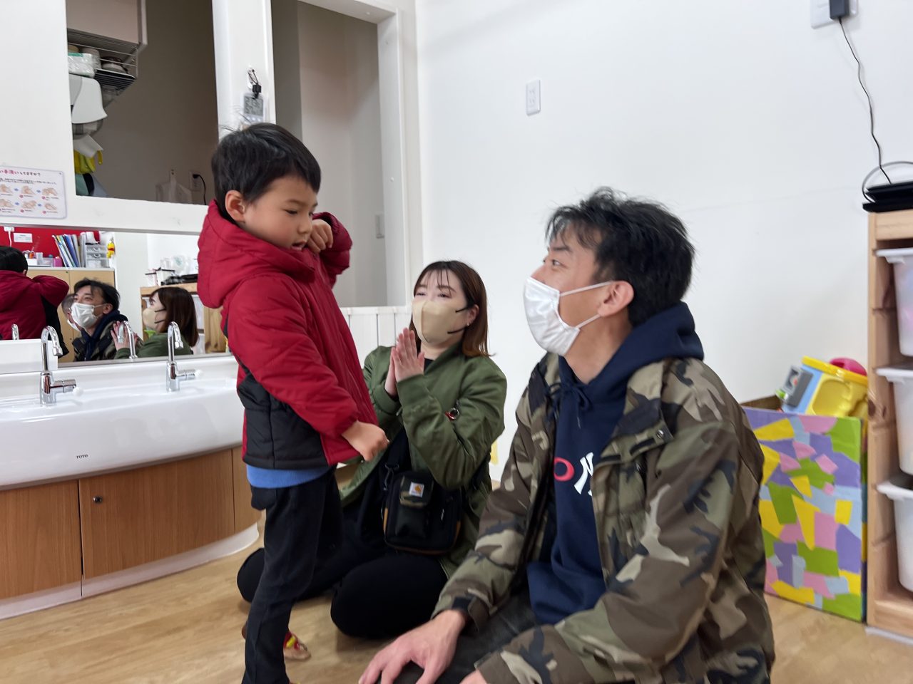 大好きなお父さん、お母さんと一緒に保育園に入り、