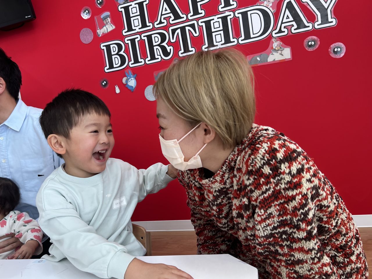 お友だちからも歌のプレゼントをもらい、ケーキの登場?♬
