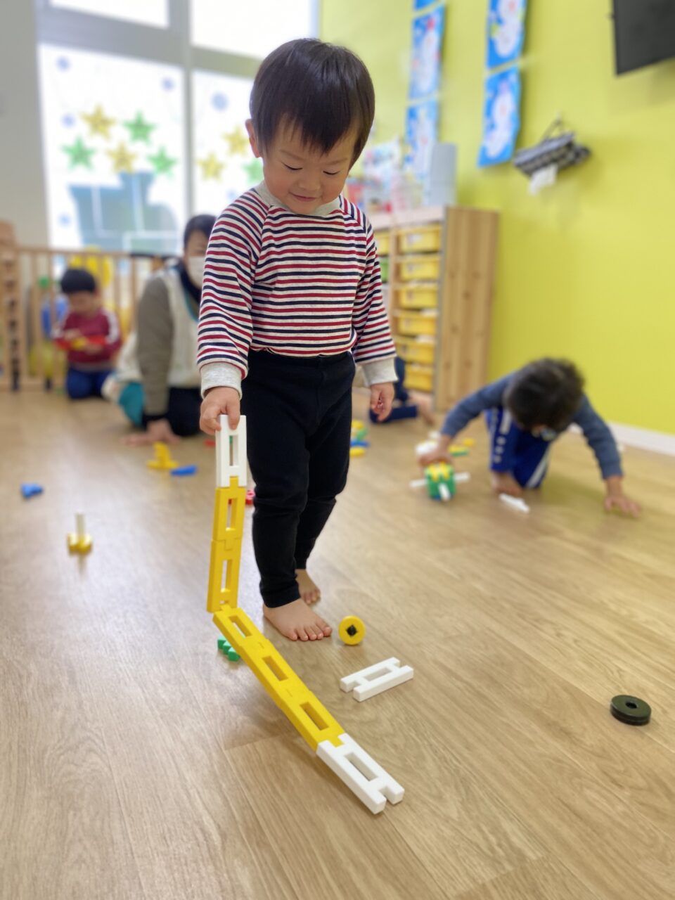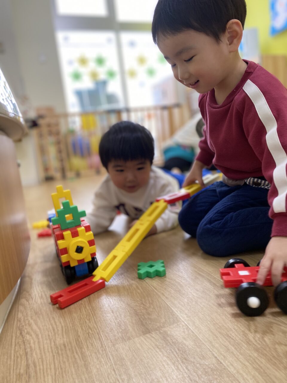 今回は、ブロック遊びに夢中のつき組君達の様子を