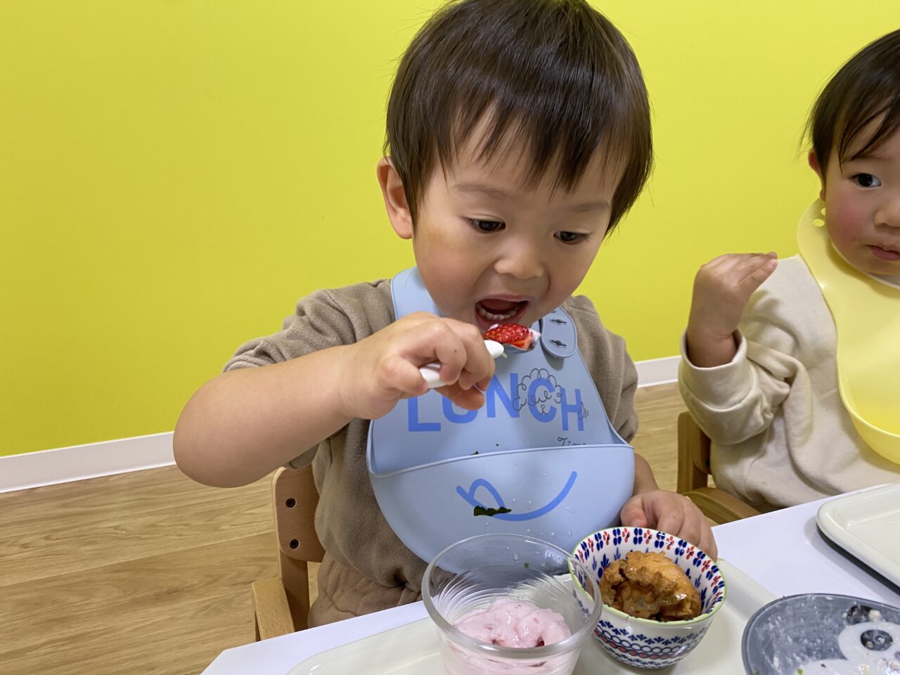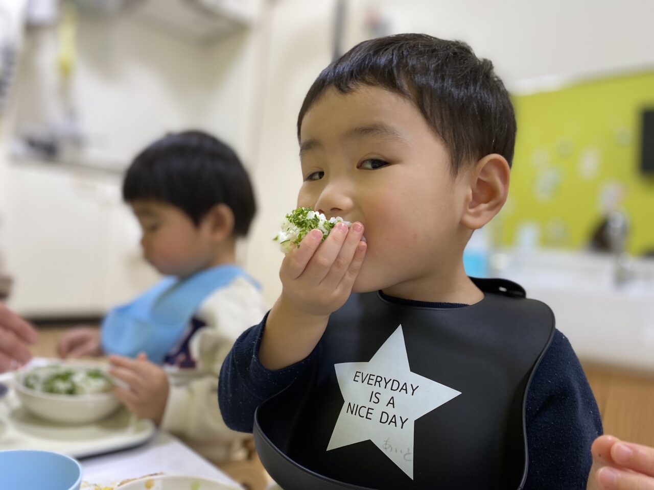 豆まきをして、昼食で恵方巻きを食べ、午後はスペシャルおやつを食べ、