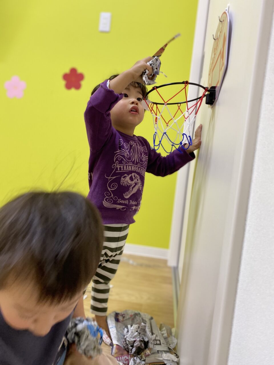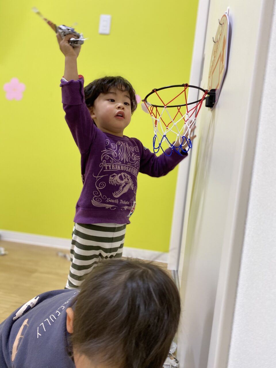 2人はダンクシュートするのが気に入って、繰り返し楽しんでいましたよ⛹️♂️