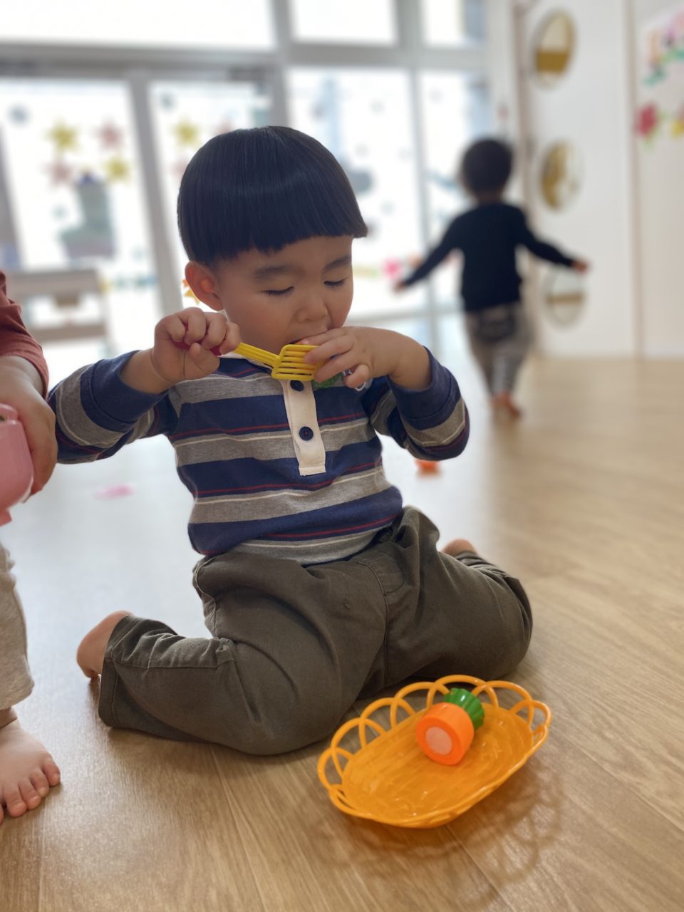 最後は味見を… 保育士にも「どぞ〜?」と食べさせてくれました☺️
