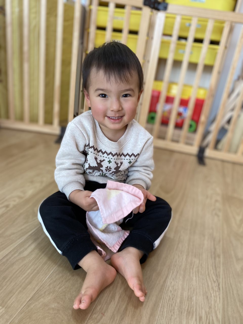 お友だちとも、ばあ〜!と顔を見合わせて、大笑いのIくんでした?