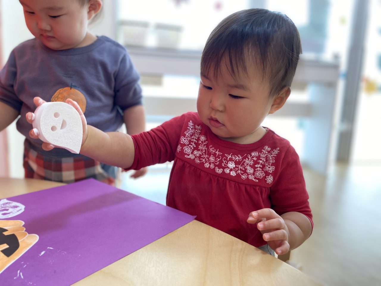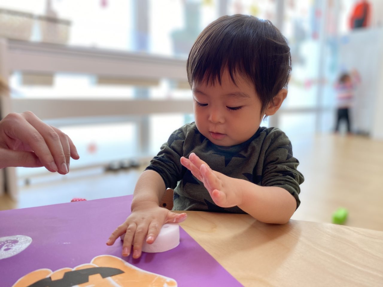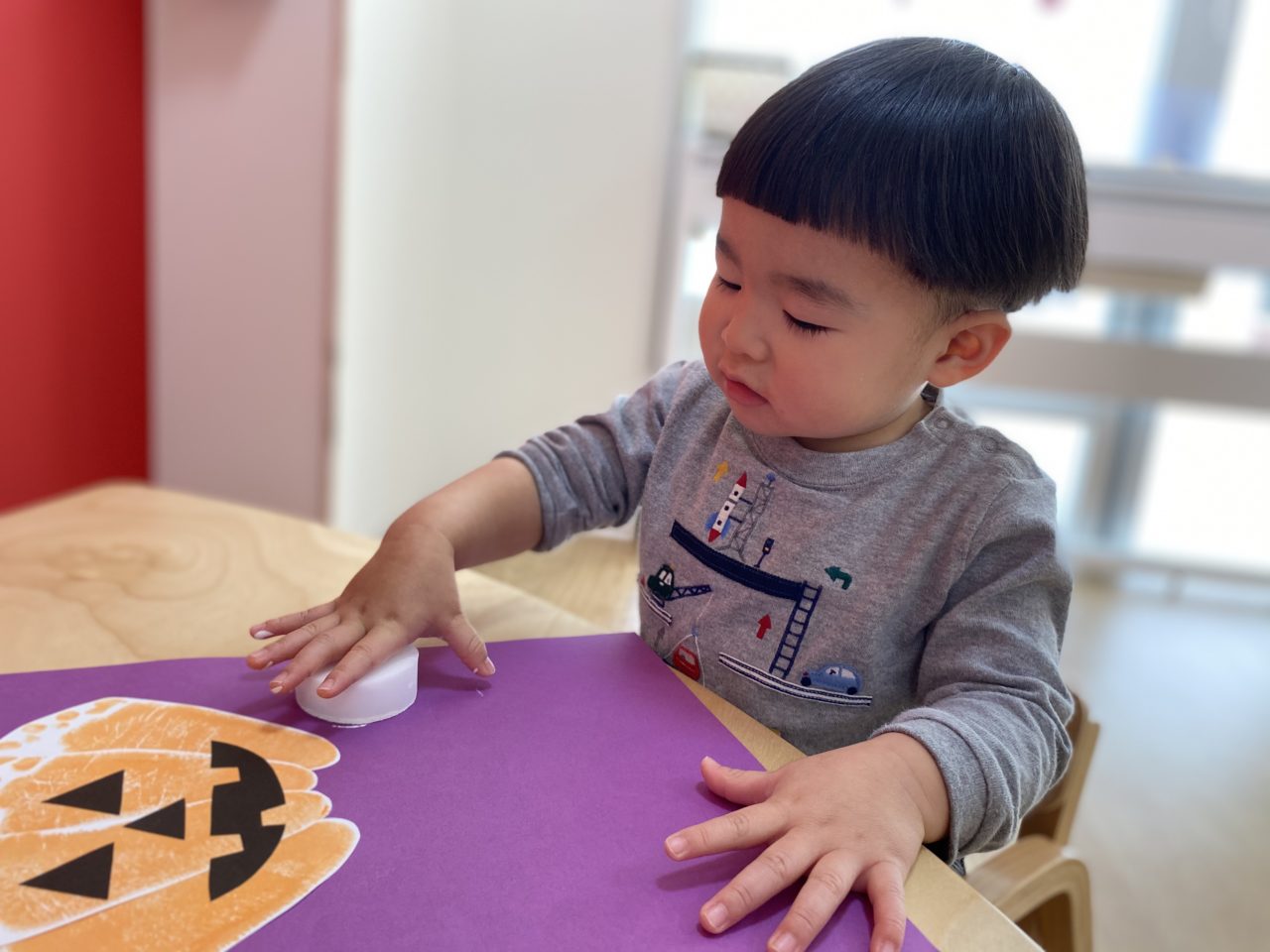 仕上げにおばけスポンジを使ってスタンプを押すと…