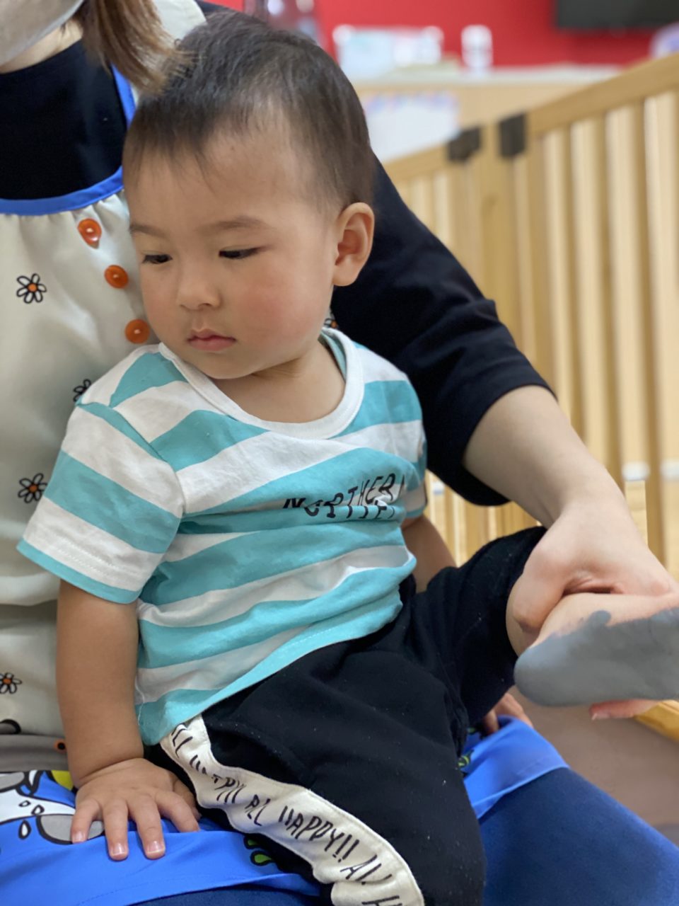 子どもたちはくすぐったいようで足をピッッーーンと伸ばしたり、笑ったり…??