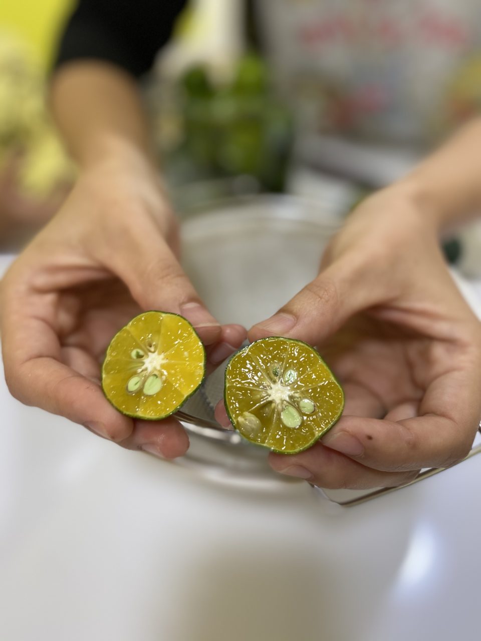 シロップと水で割り、搾りたてシークヮーサージュースの完成?✨