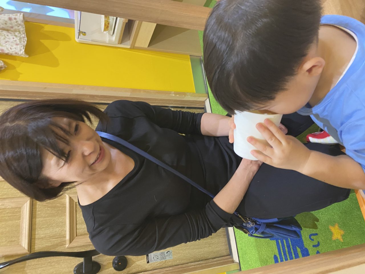 折角なので、降園時におうちの方と一緒に飲んでいただきましたよ❤️