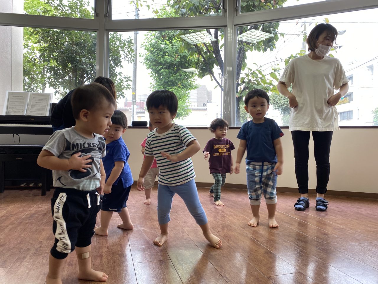 保育士の真似をして体を動かそうとする姿が可愛らしかったです?