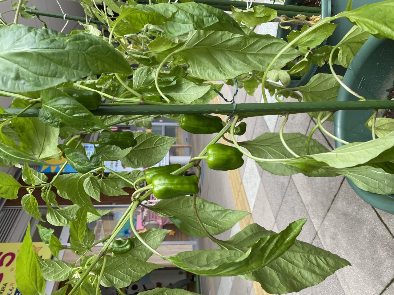 私もあれ?ミニトマトじゃなかったかな?と思いましたが!(^^)!おっきくて立派なトマトですね✨自分たちで収穫したトマトの味は格別だったようですね🍅ピーマンも楽しみですね❣いっぱい食べて大きくなってね✨
