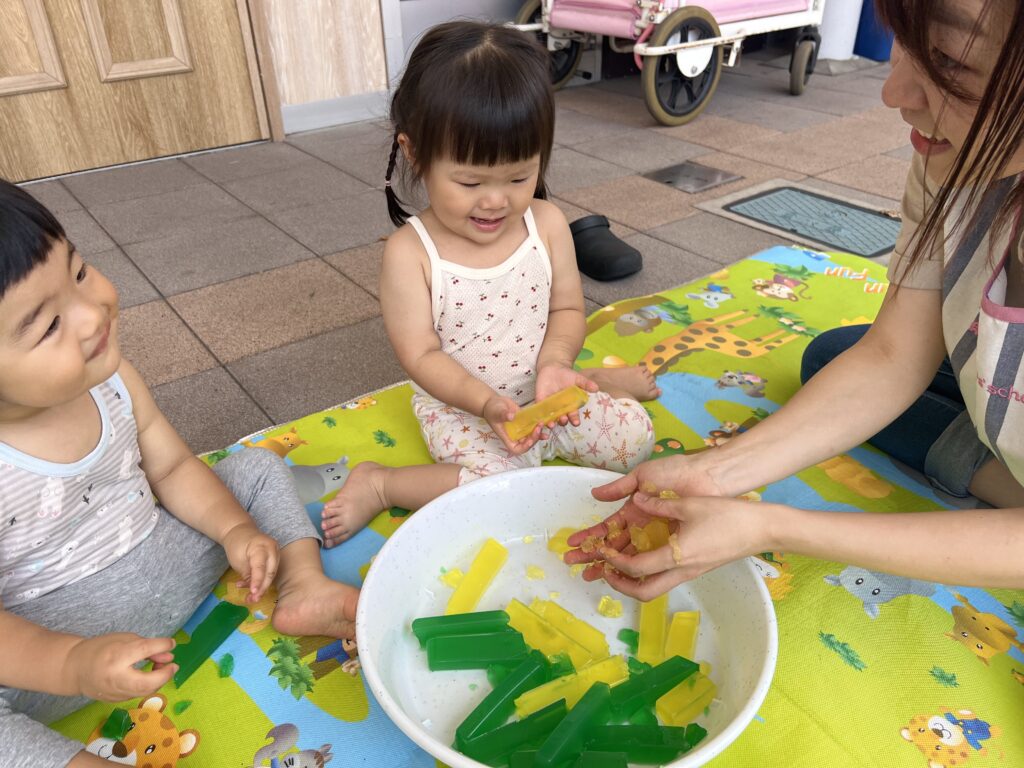 寒天で感触遊びを行いました☺️