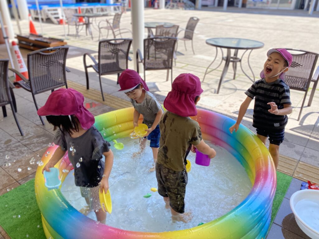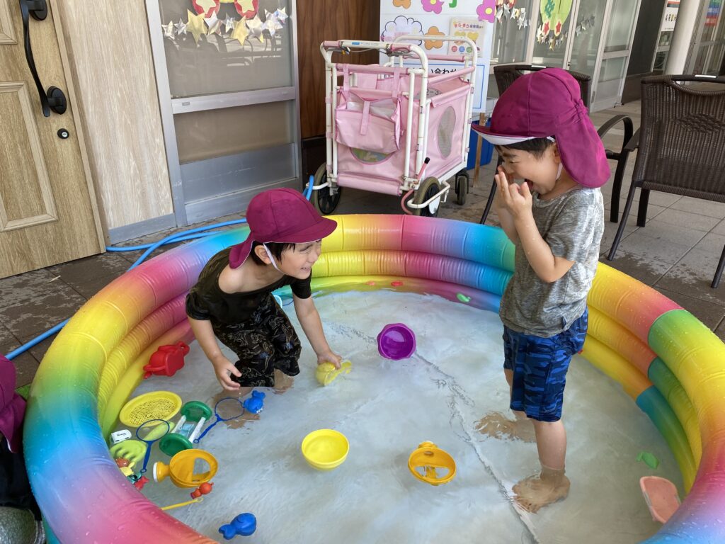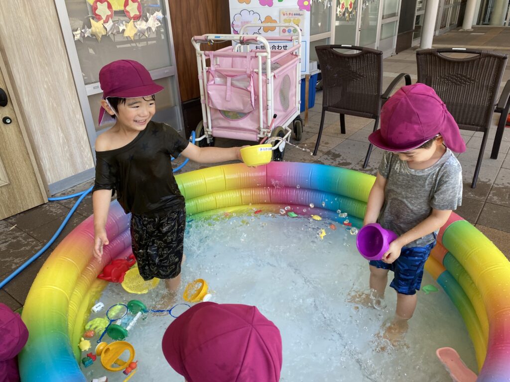 全身びしょびしょで、洋服が重くなるまで水遊びを楽しんだつき組さんでした?✨✨