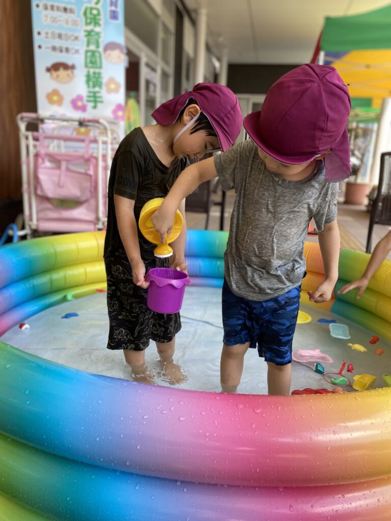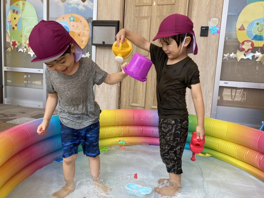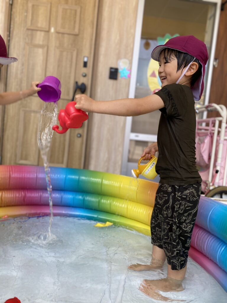 お友達や保育士にかけようと思った水がバシャーーン‼︎と自分にかかることもしばしば…(笑)