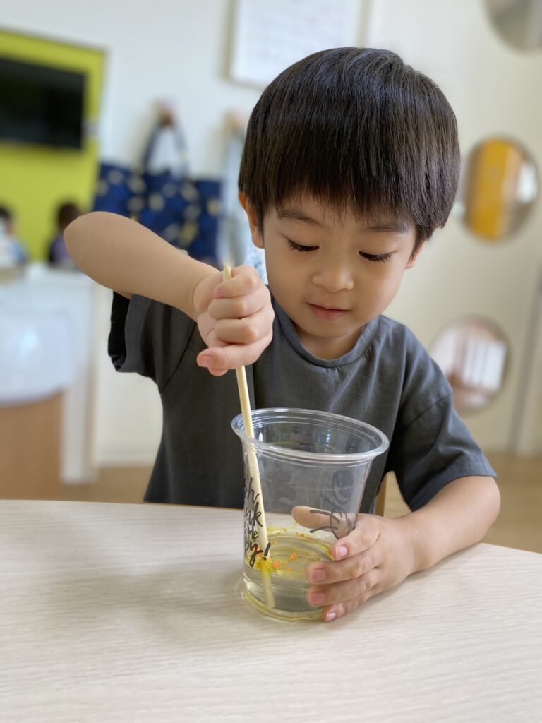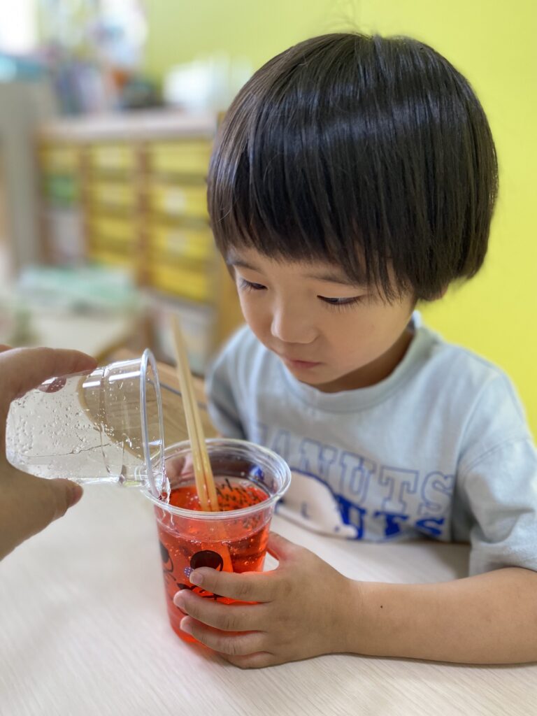 『色が変わったっ‼︎』と驚きながら保育士に教えてくれます♡