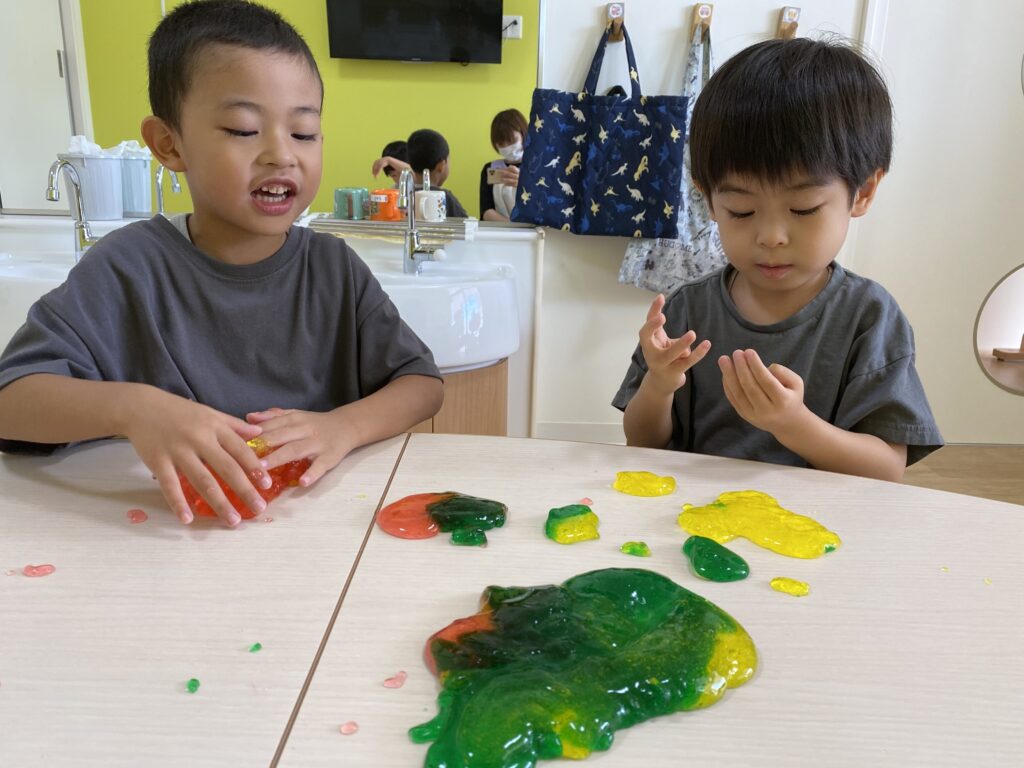 初めてのスライムに子どもたちは夢中で遊びます?