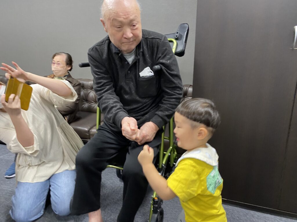 『勝ったよ〜‼︎』『おばあちゃんと同じだった〜♡』などお話する子、子どもたちの姿を見てニコニコ笑顔を見せている利用者さん…ふれあいを楽しんだ様子でした??