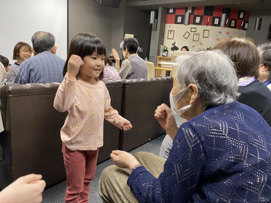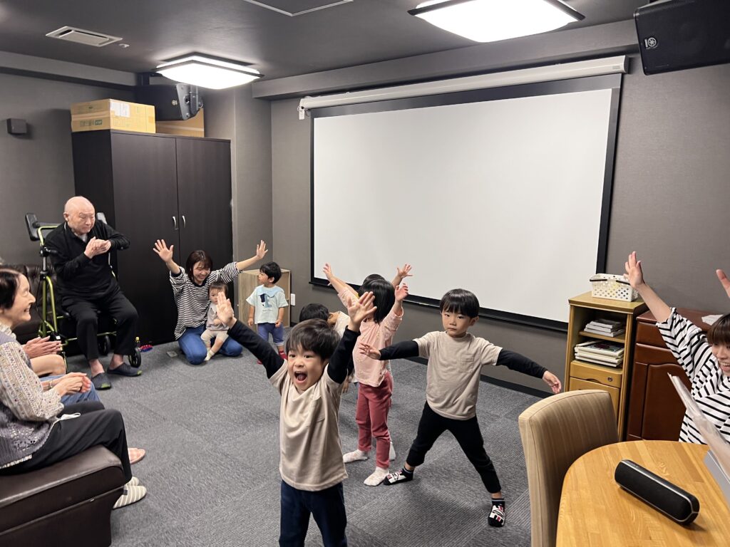 子どもたちの手遊びを見て、おじいちゃん、おばあちゃんも一緒に手遊びをやってくれました?