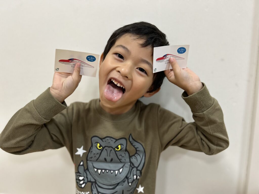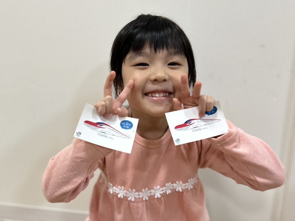 大曲駅でこまちを見てきた子どもたちは思わぬプレゼントに大喜びでした??