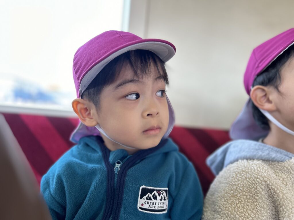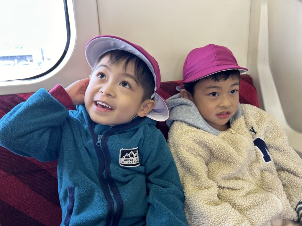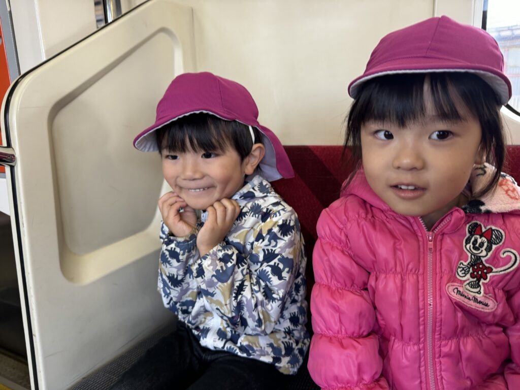 初めての電車に緊張した様子を見せる子、大興奮でお話しが止まらない子、電車から見える景色に釘つけになる子と一人一人の反応が様々でした??
