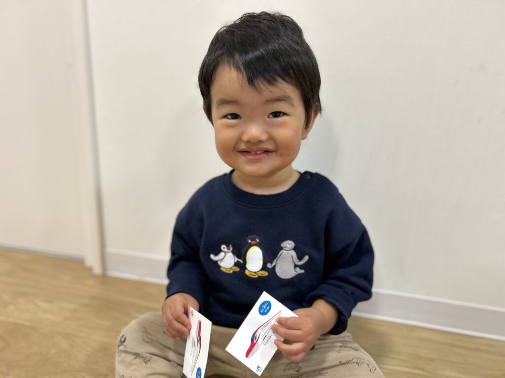 1歳児のお友達はさらさ大曲の職員の方に色紙を渡すお仕事をしてくれました?