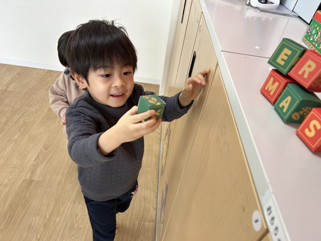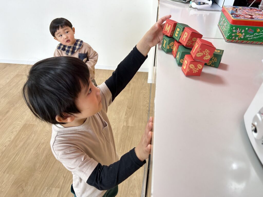 お部屋にある『Merry Christmas』の文字がついたミニBoxを見つけてもらいました♬