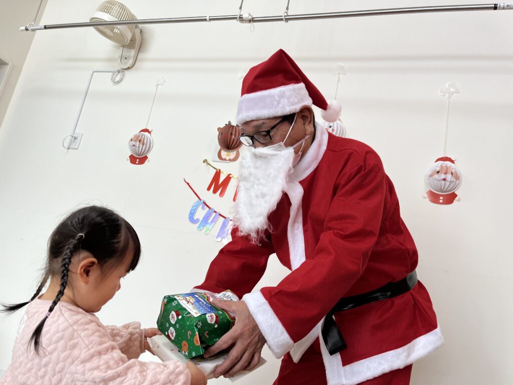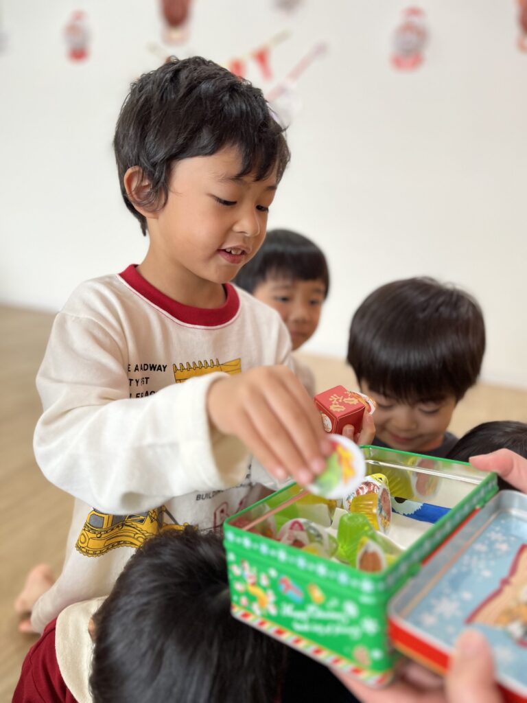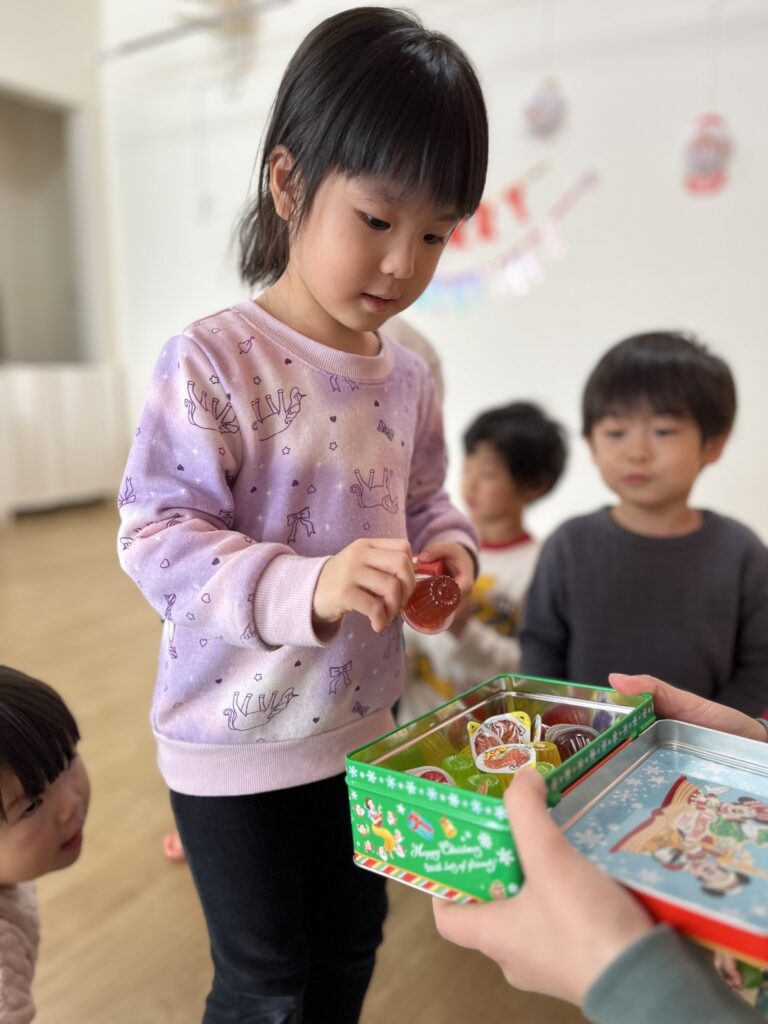 サンタさんに、踊り、ゲームを楽しみ、今日はお土産いっぱいの子どもたち?