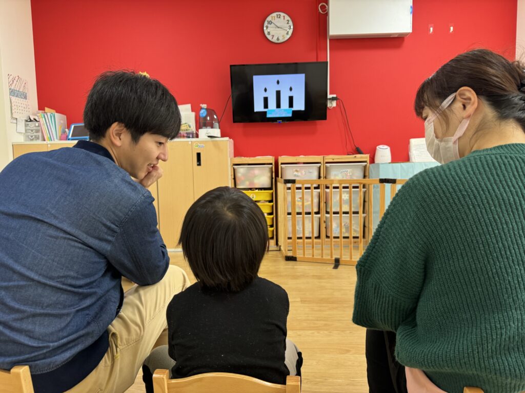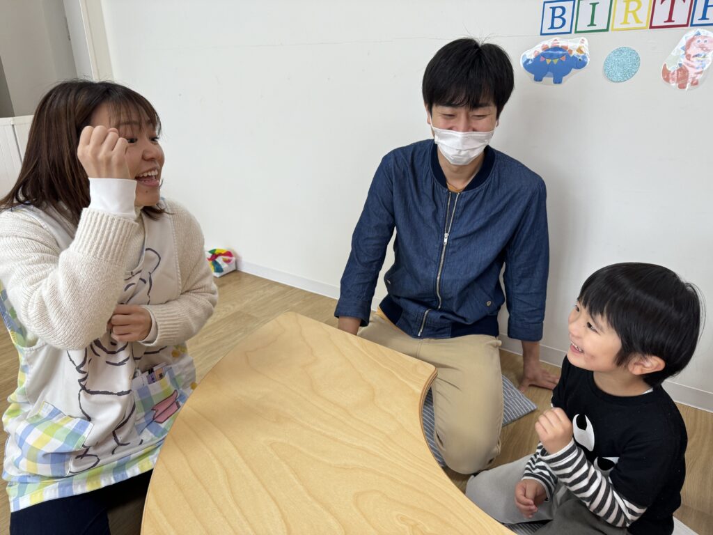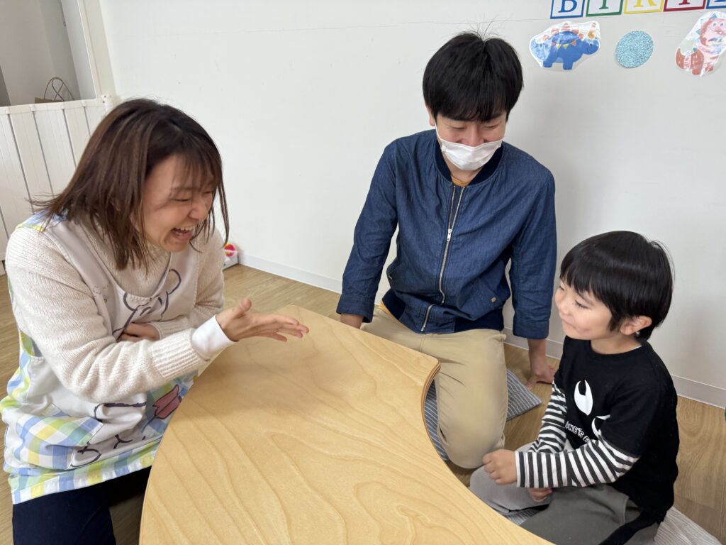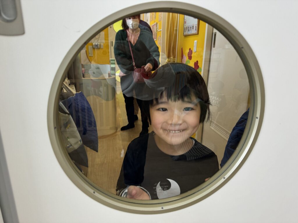 表情を見ると少し緊張した様子のHくんでしたが、名前と年齢をしっかりお話してくれました?