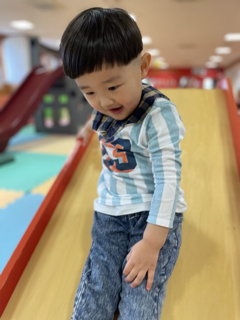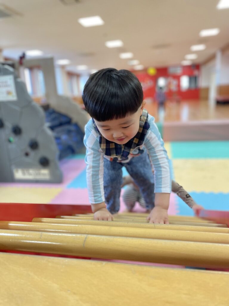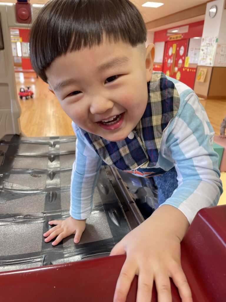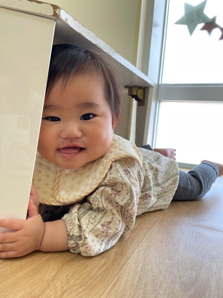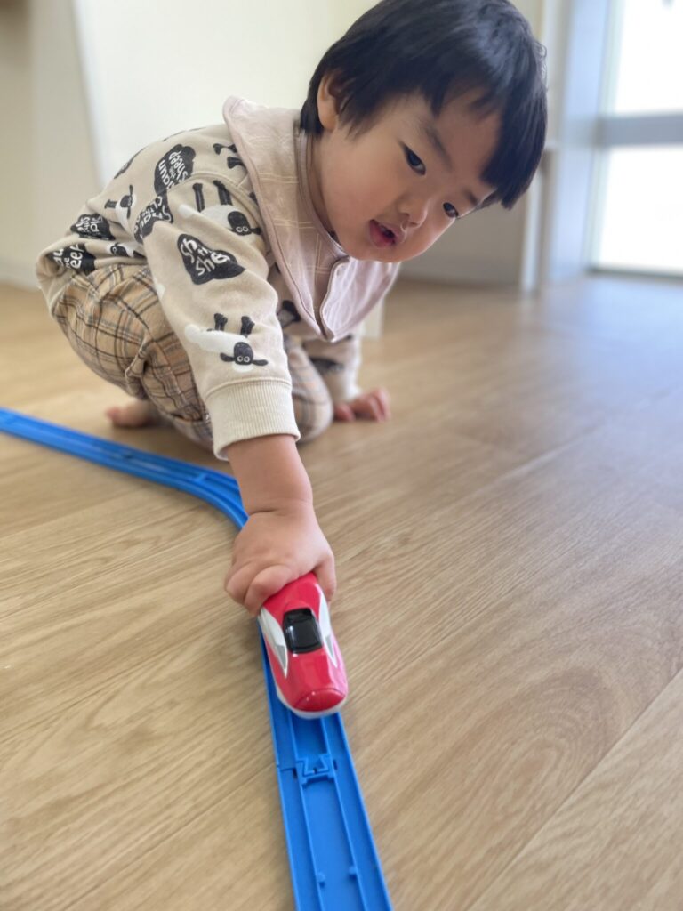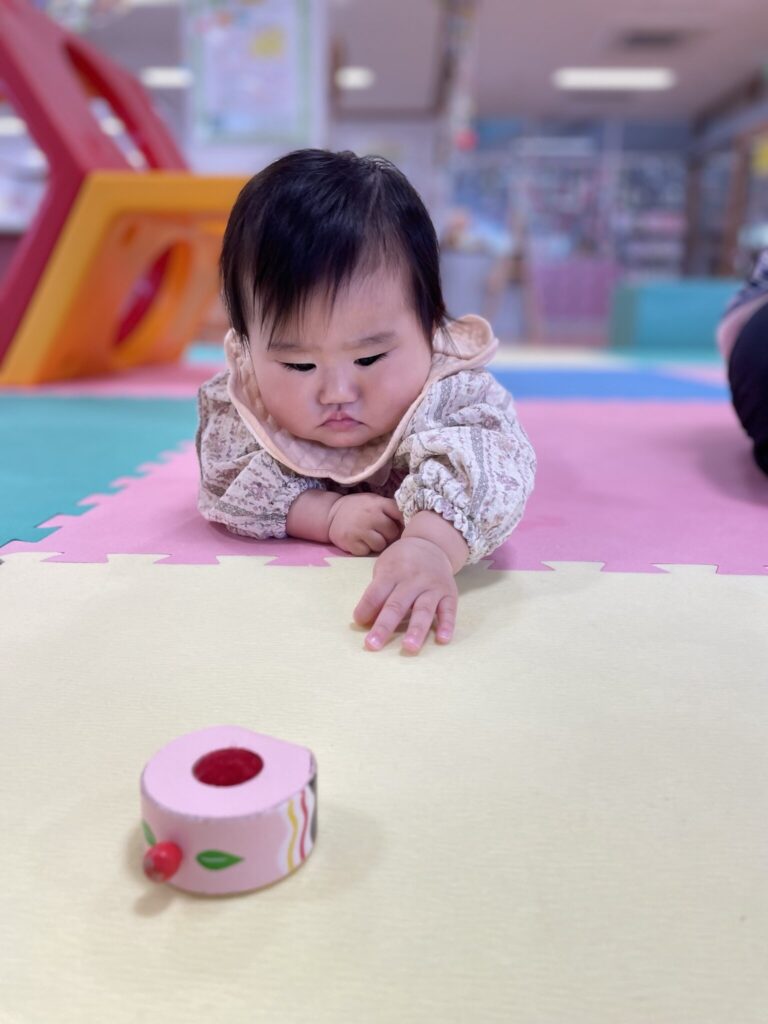 そして、お兄さんお姉さんに負けじと保育室の中をスイスイコロコロ動いて遊び