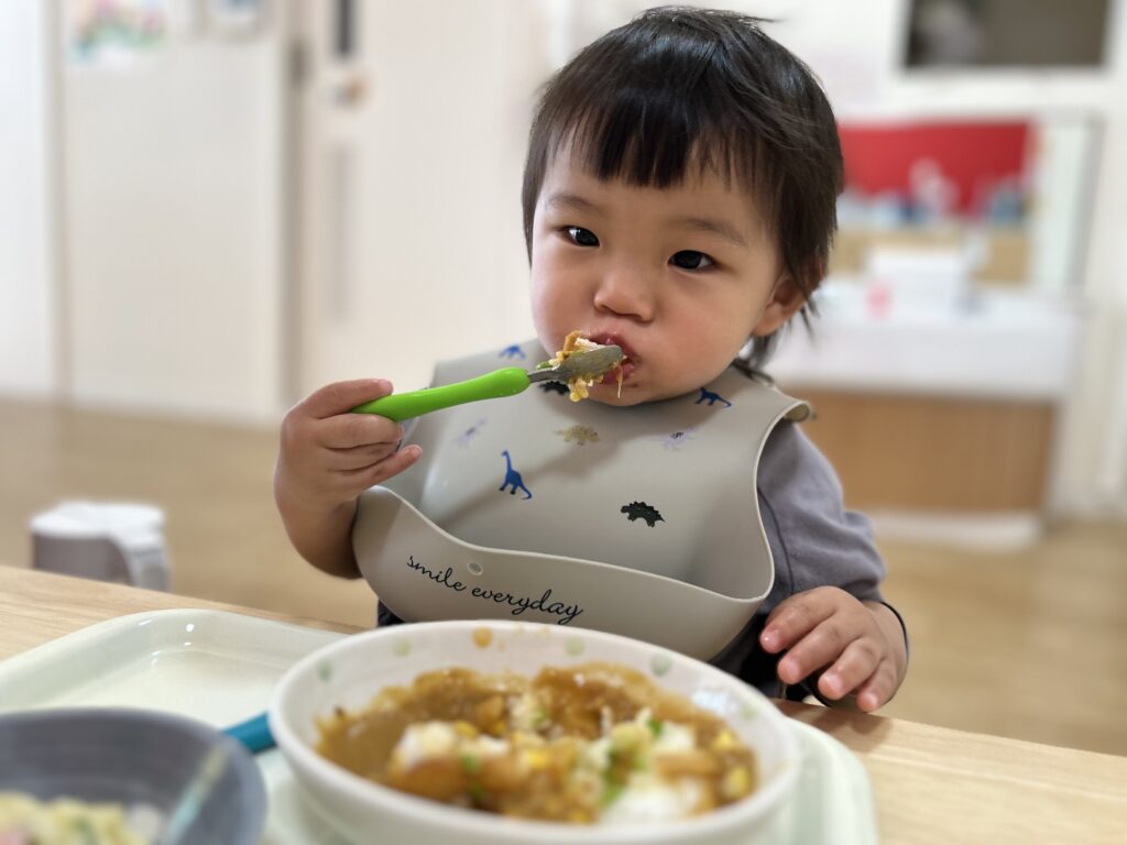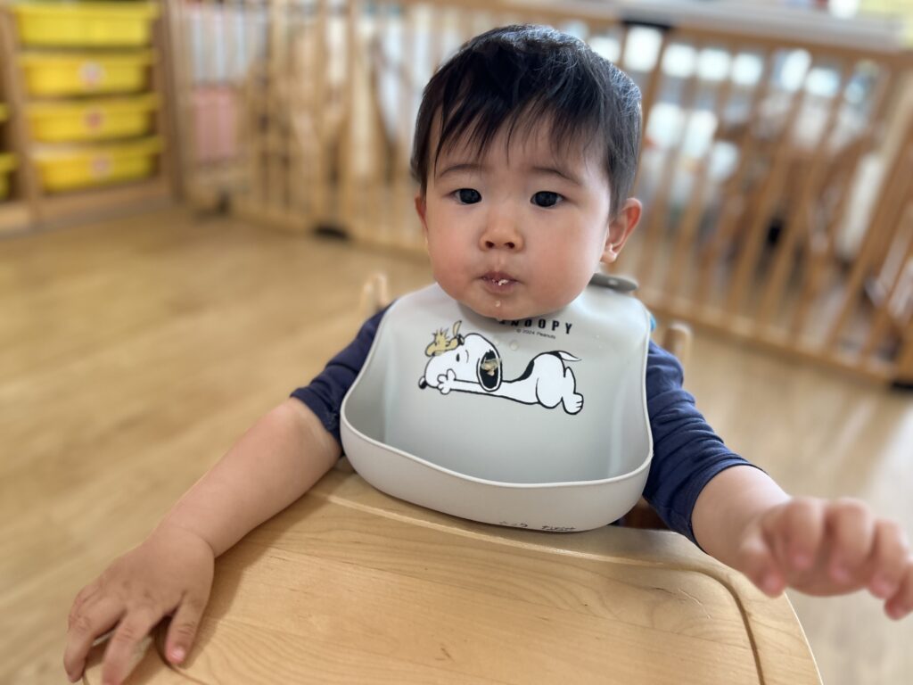 1歳児のお友達は待てないようでいただきますの挨拶をする前にお口の中にパクっ‼︎お口に入る手前に