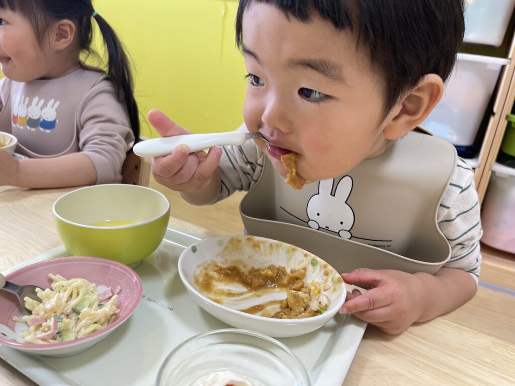 大好きなカレーがこいのぼりに変身してさらに食欲が倍増の子どもたち☆