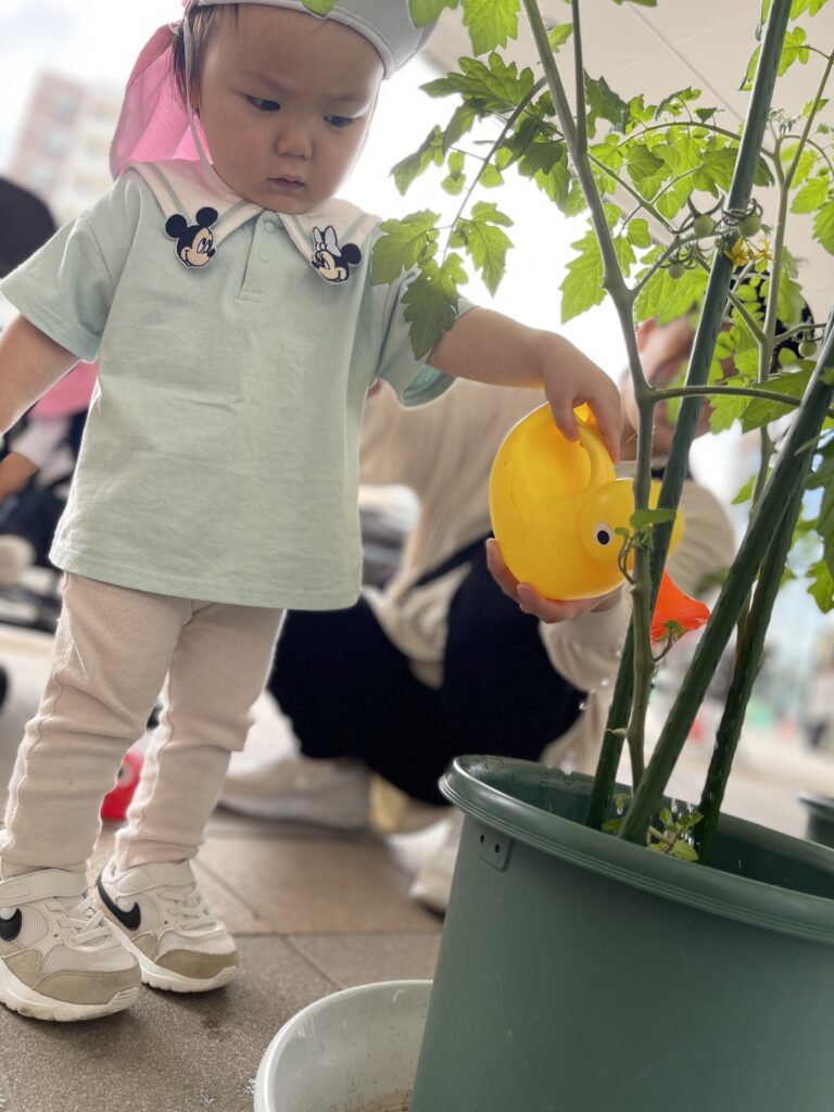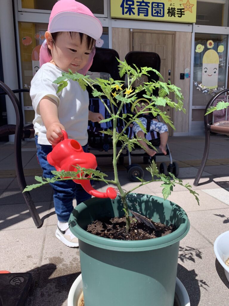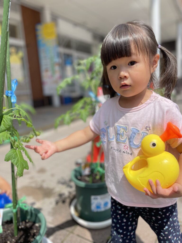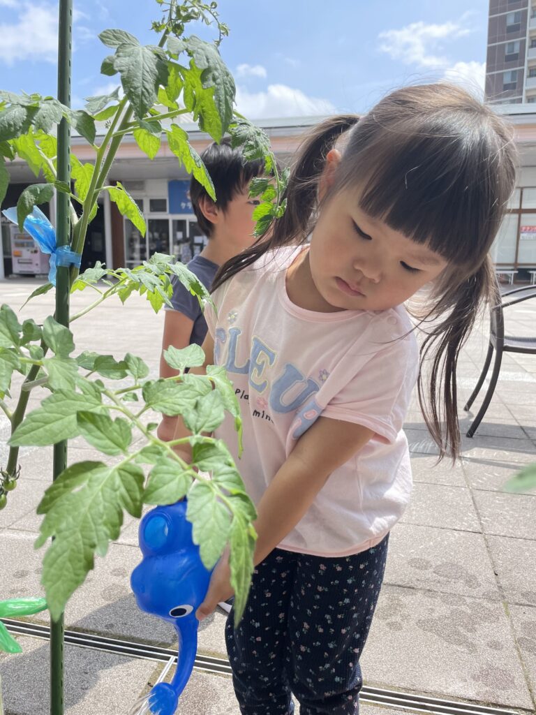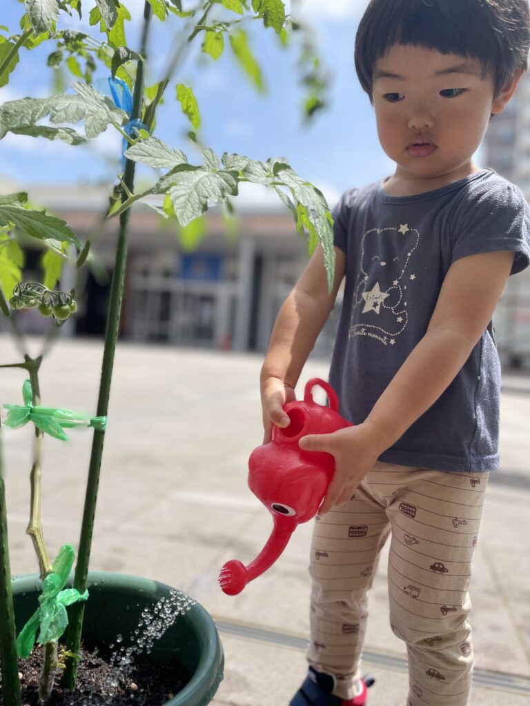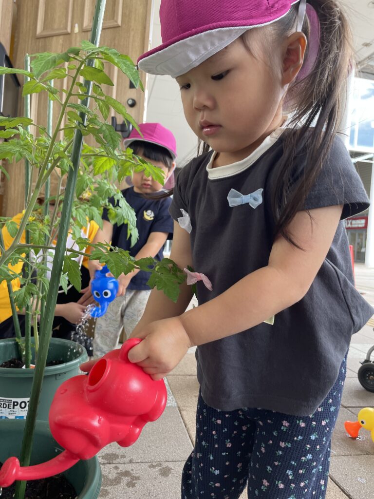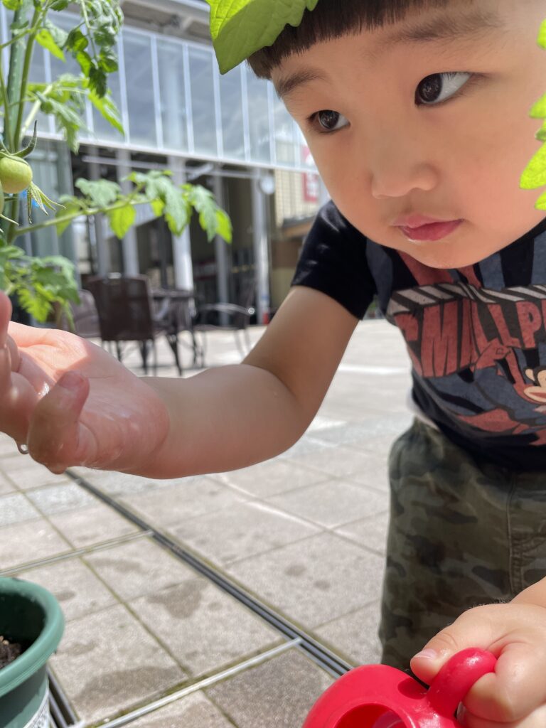 毎日お水をあげる度に、「先生?このトマトいつ赤くなるの?」