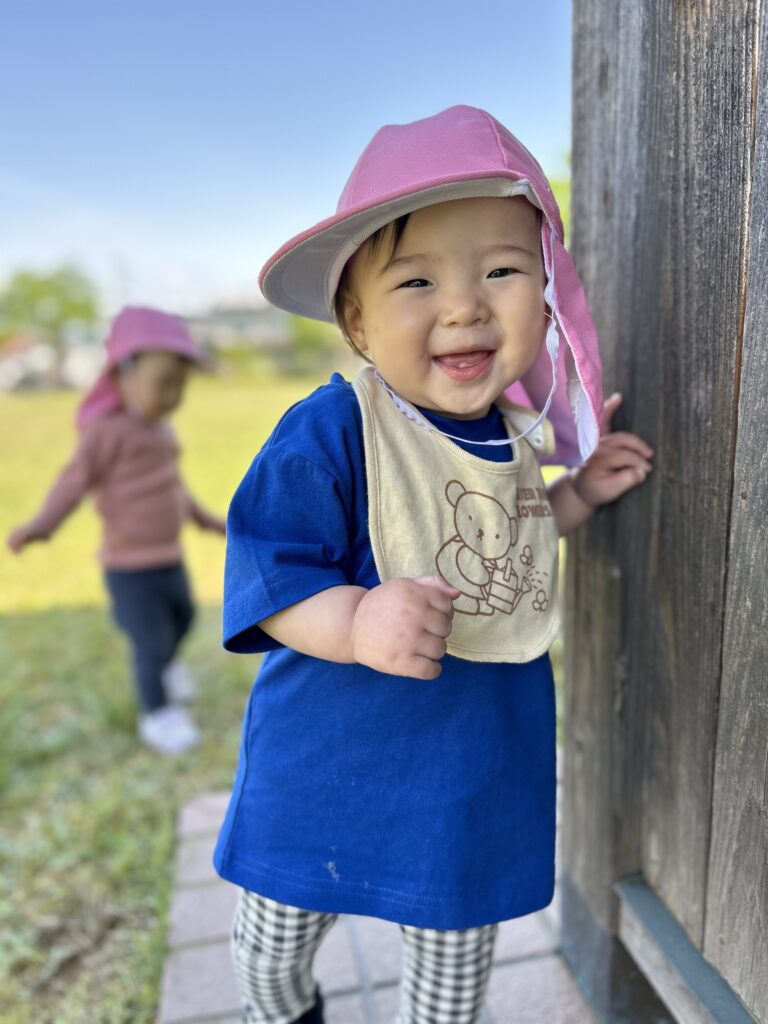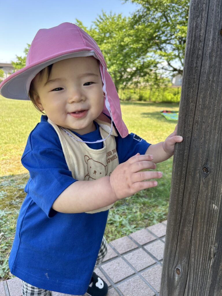 また、公園内にある休憩スペースに掴まり、『建築関係トントン』のギャグをすると大笑いでこの笑顔です❤️❤️