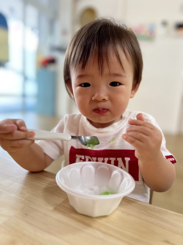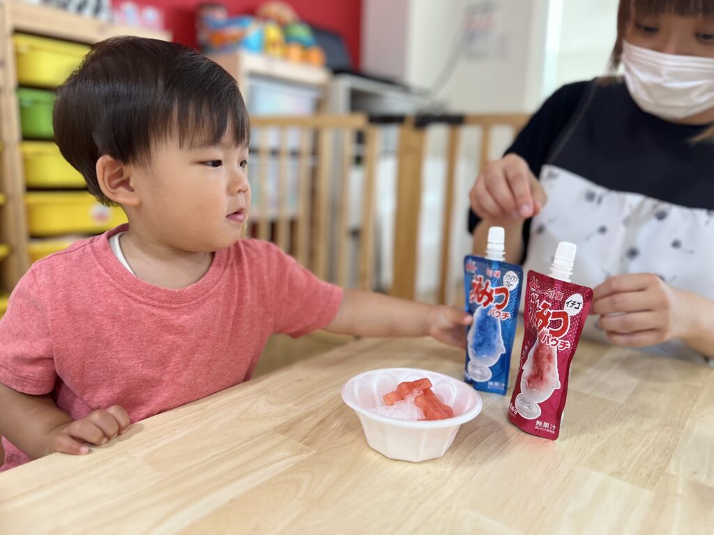 まだシロップを食べたことがない子はリンゴジュース🍎、ブドウジュース🍇から選びました♪