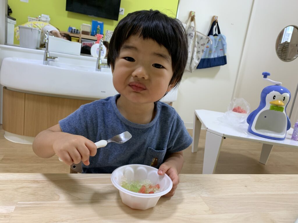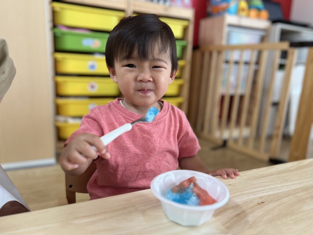 シロップの味はメロン🍈、ブルーハワイ🏖、イチゴ🍓の3種類の中から自分で選びました♪