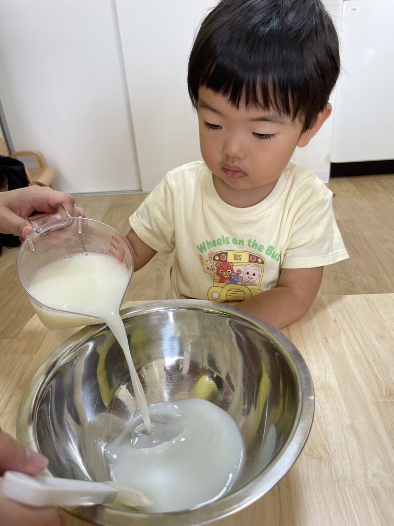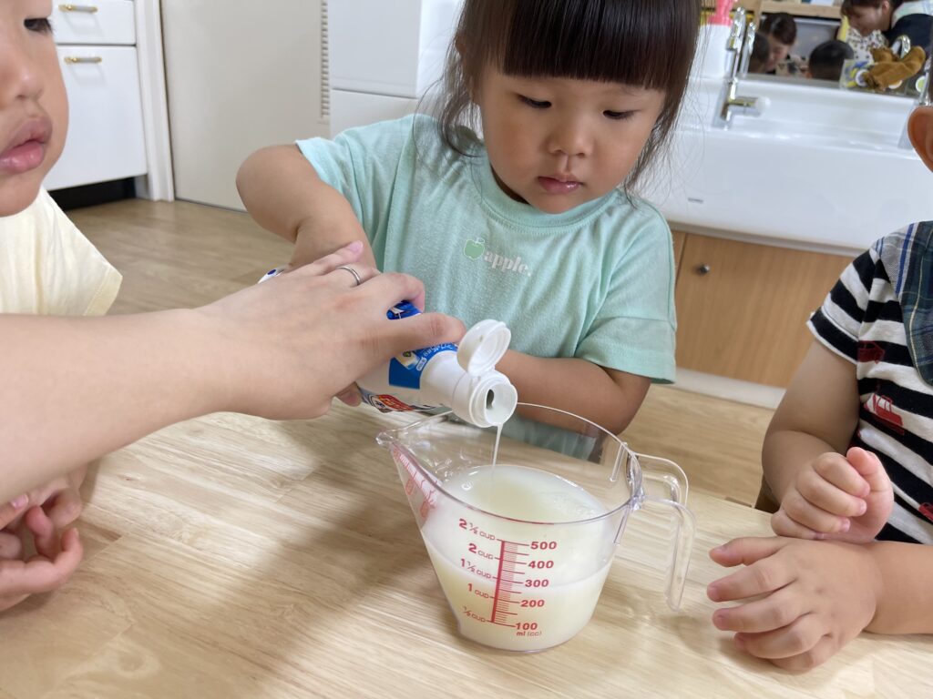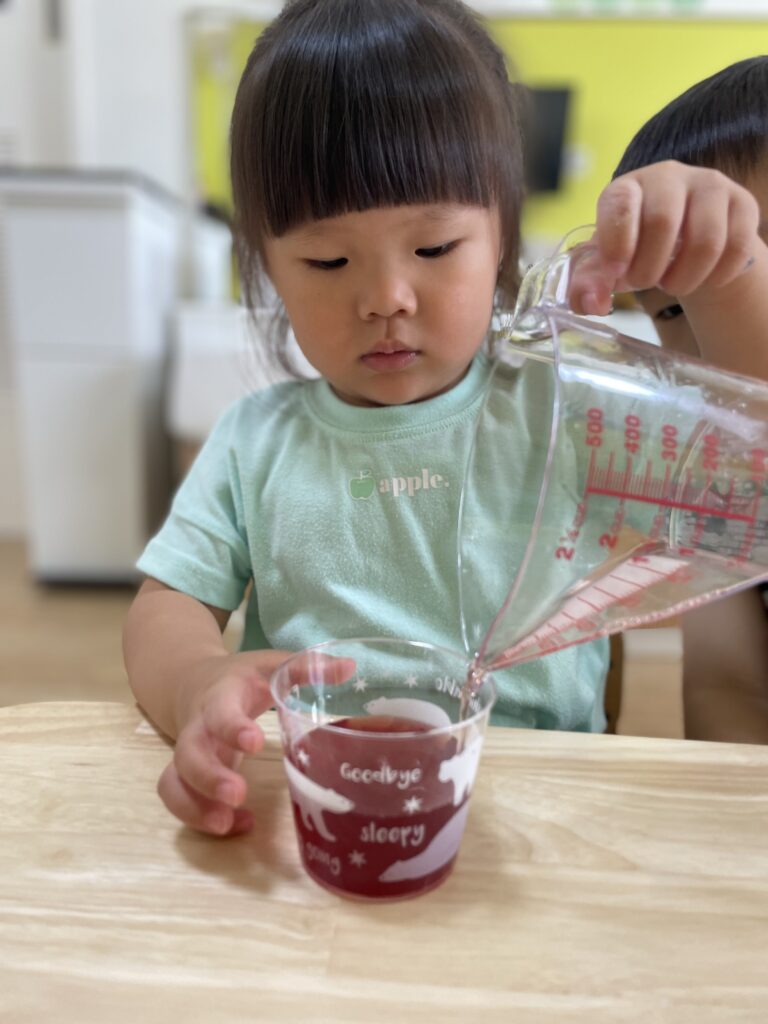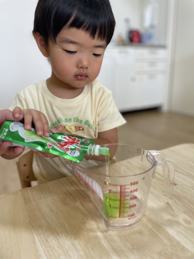 まずは、カルピス・かき氷シロップ・リンゴジュースを計ります🫗