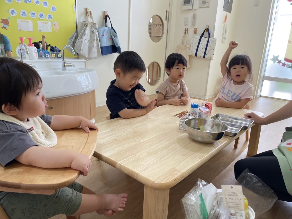 美味しいと沢山おかわりしたあとは、みき先生とほし組の先生方にもお裾分け!