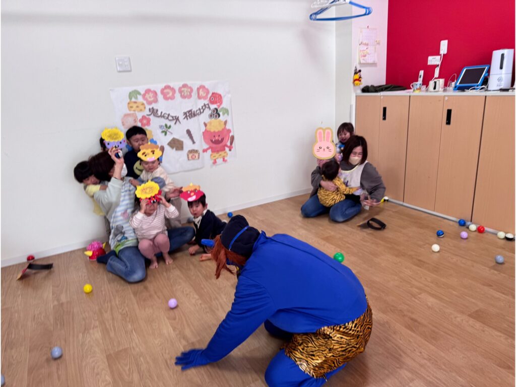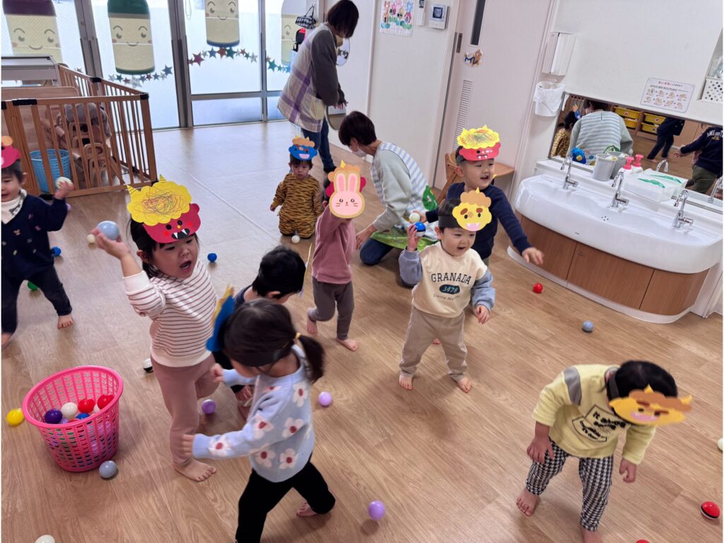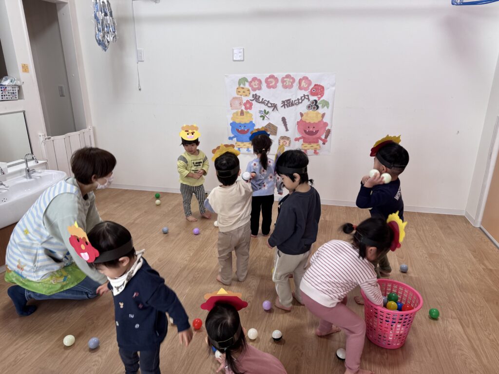 ボールを豆がわりにして豆まきの練習もしました😝💦
