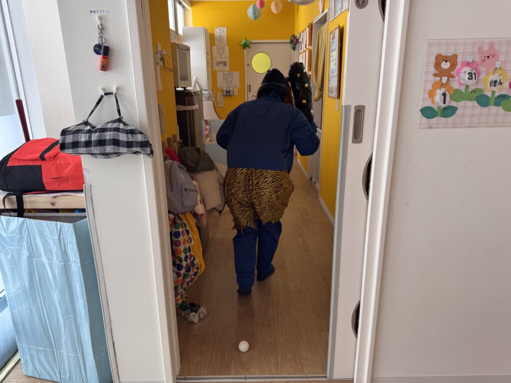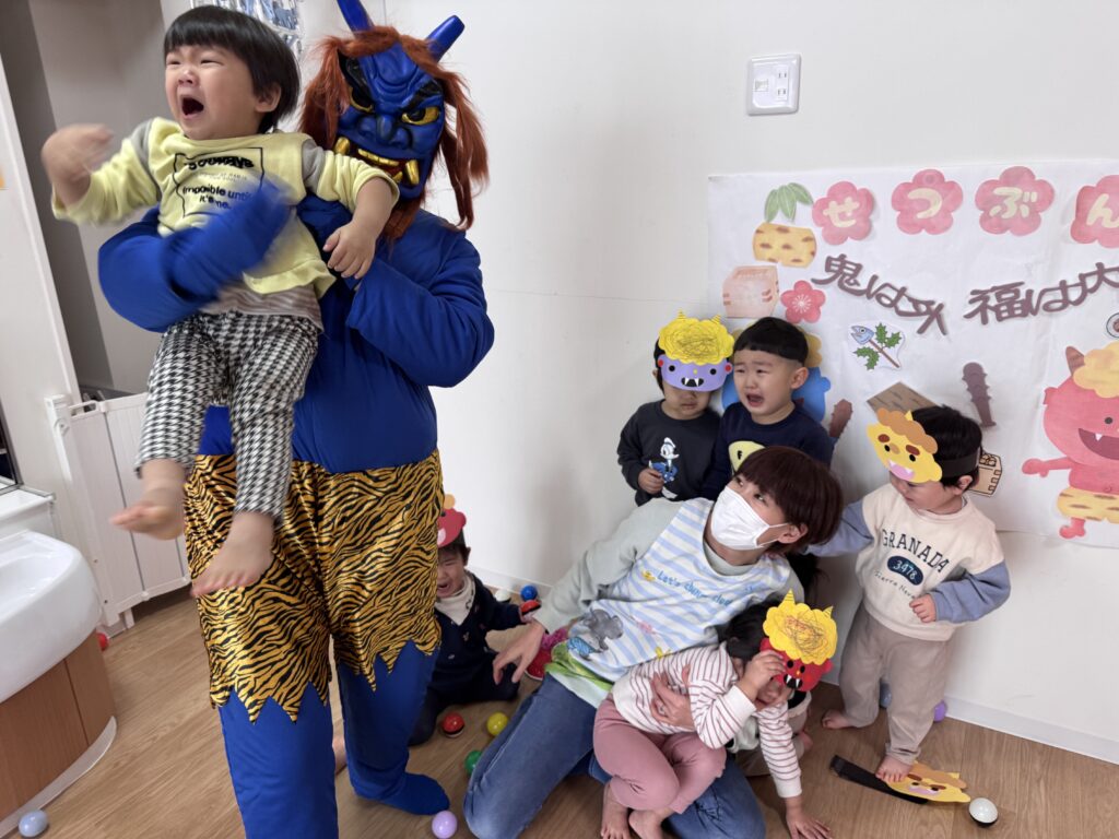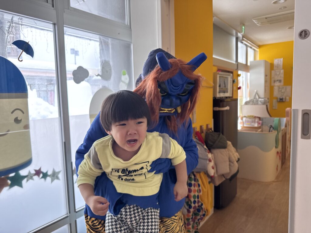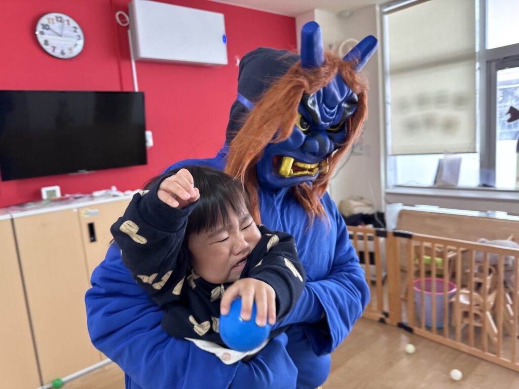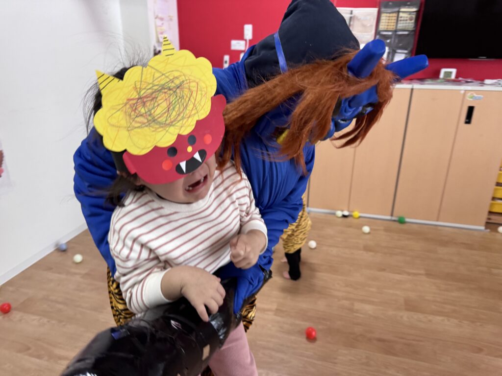 鬼の登場に、逃げ回る子どもたち💦