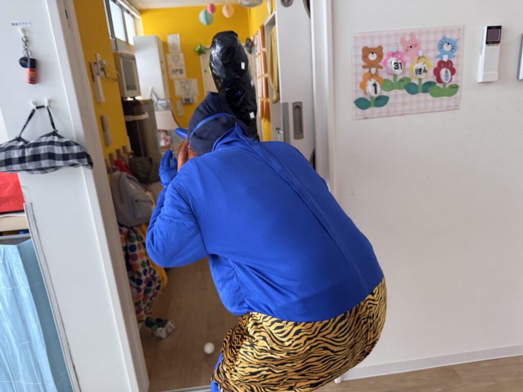 保育士の後ろに瞬時に隠れて身を隠す子どもたち💦