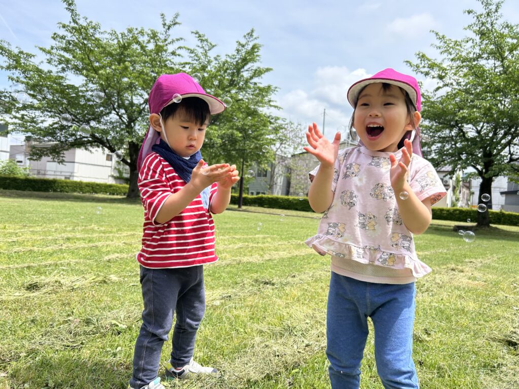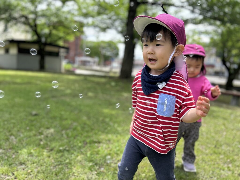 しゃぼん玉に笑顔で翻弄される子どもたち😍🫧