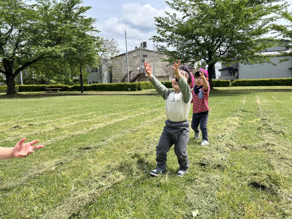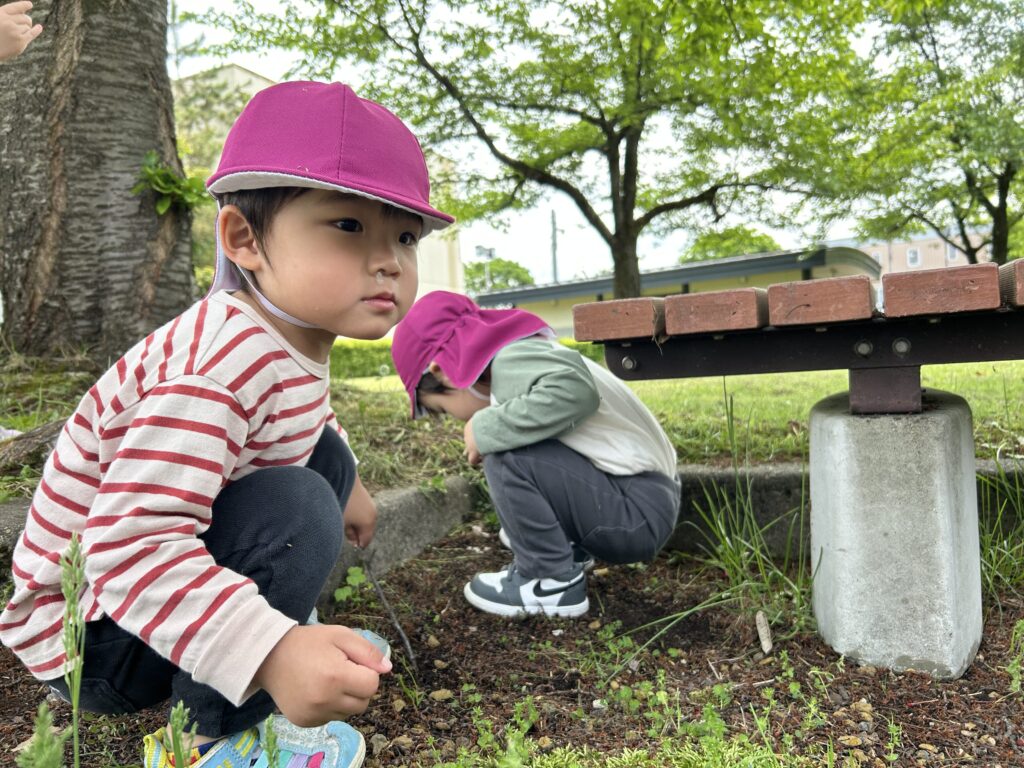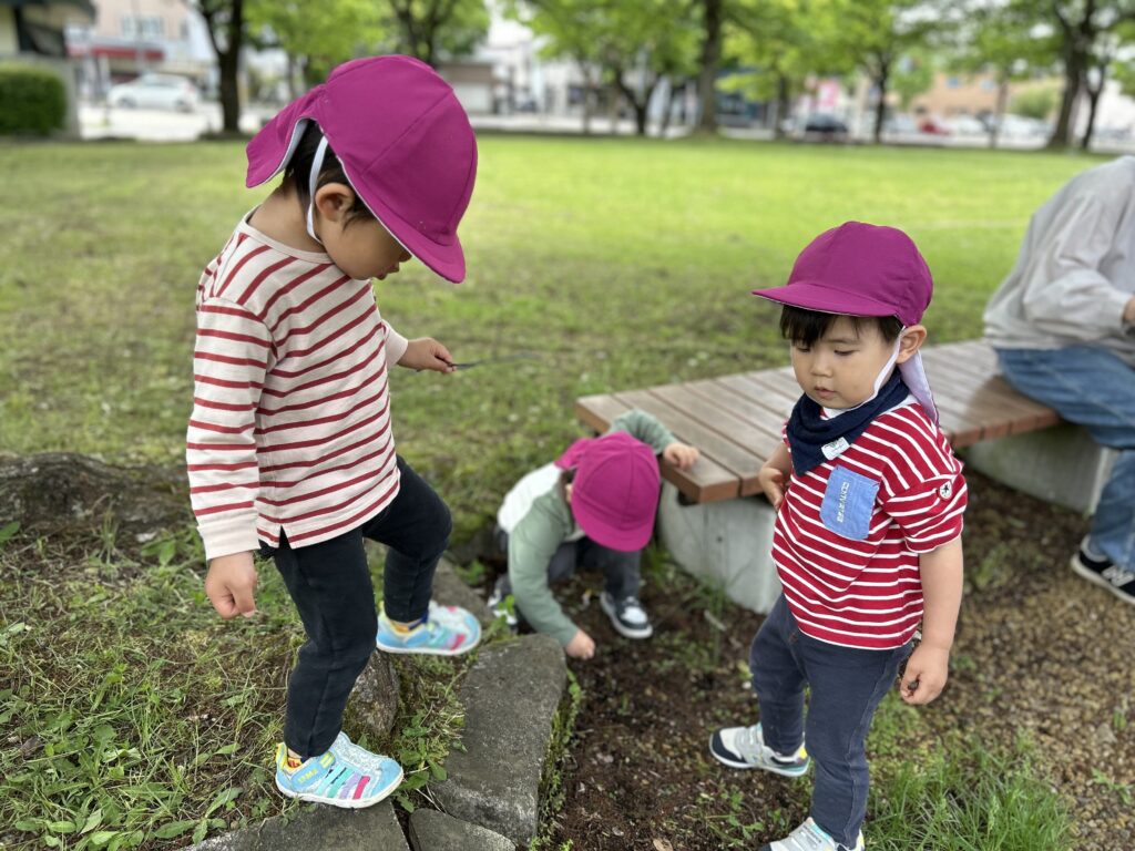 しゃぼん玉で遊んだ後は公園内の自然物に触れたり、身体を動かしたりしながらひさしぶりの戸外遊びを楽しみました🥰🌈