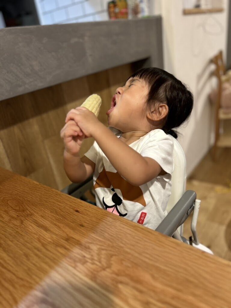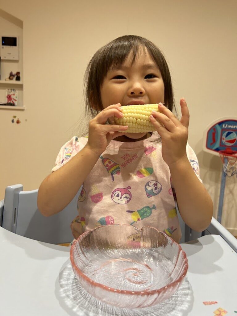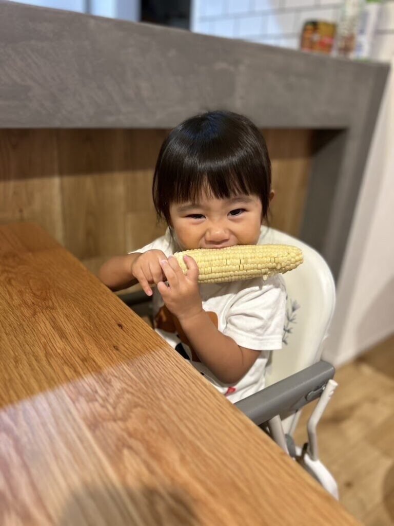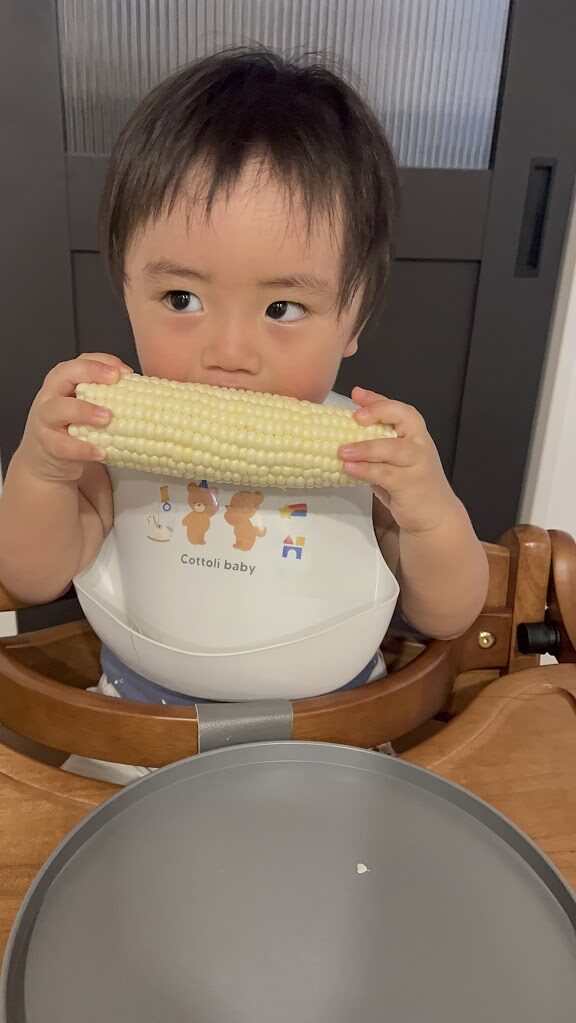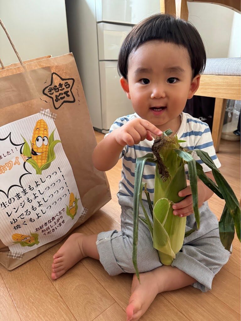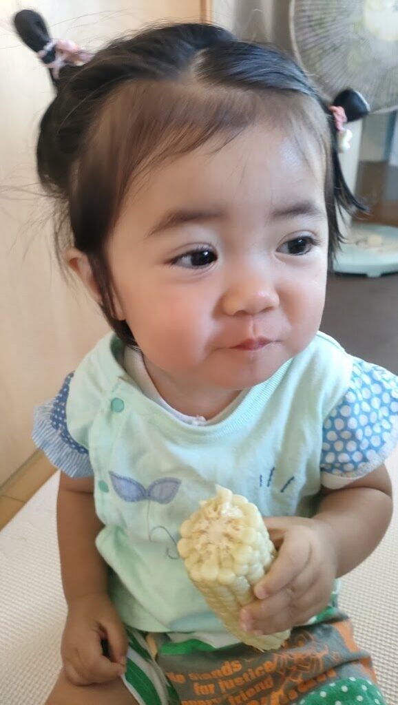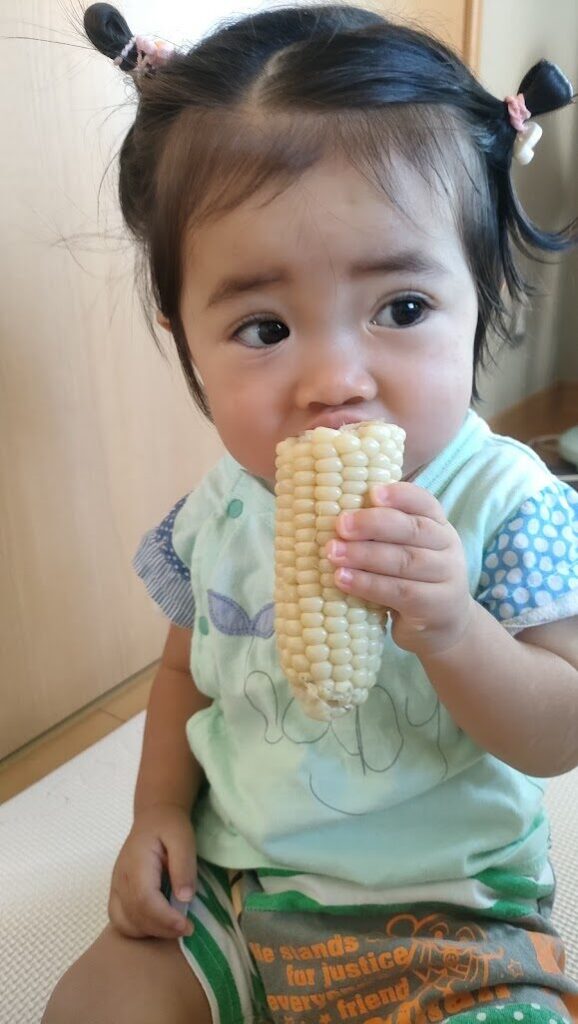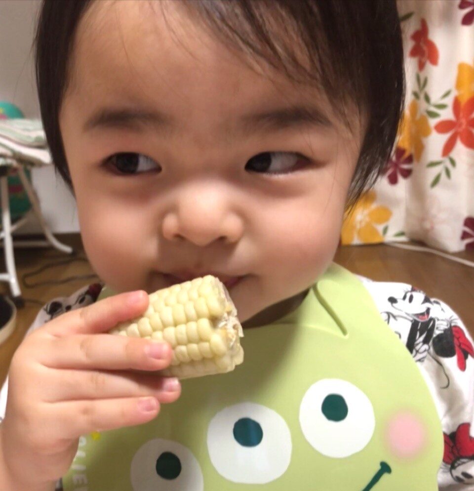 お家で食べた様子を送っていただいたので、嬉しそうに頬張る可愛い笑顔をご覧ください🌽💓
