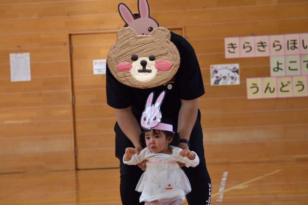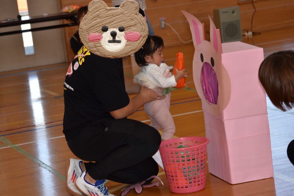 3、0歳児親子競技「くいしんぼうくまさんとうさぎさんの大冒険」