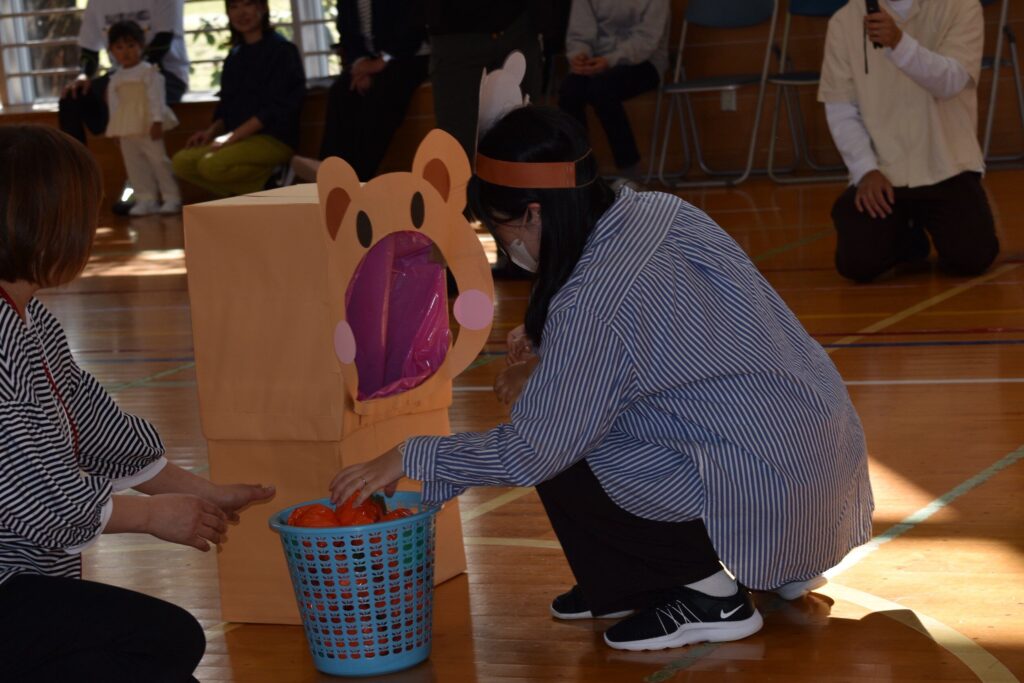 5、親子競技「みんなで力を合わせよう!カゴいっぱいになぁれっ!!」