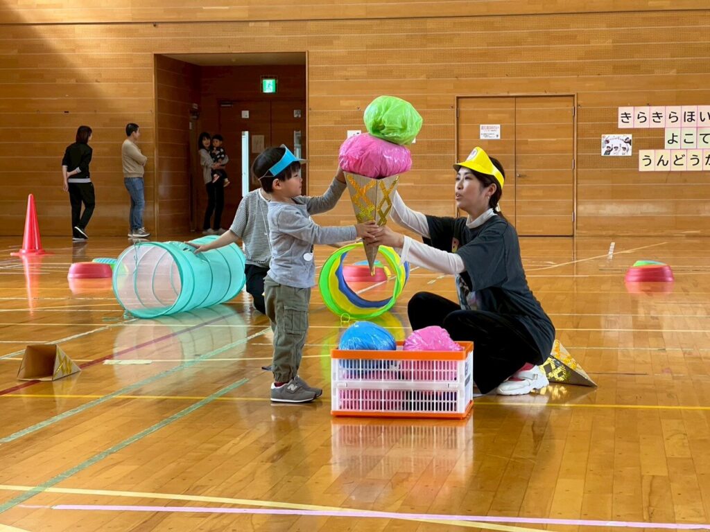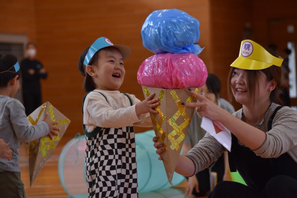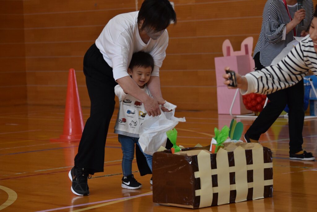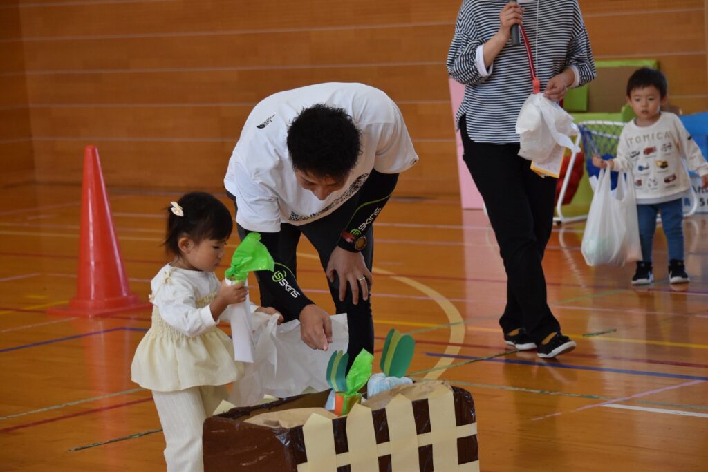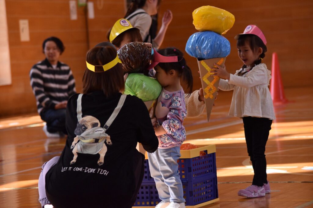 7、2歳児親子競技「おまたせしましたー!おやこ愛♡スクリーム」