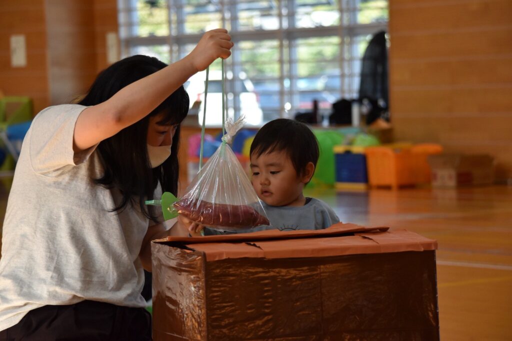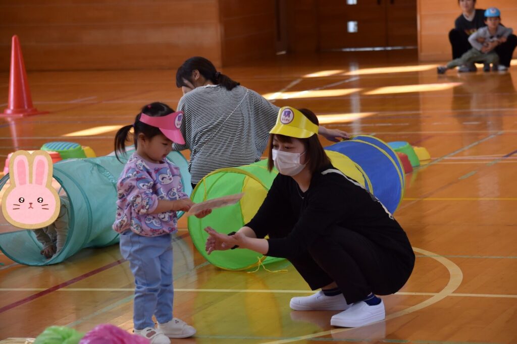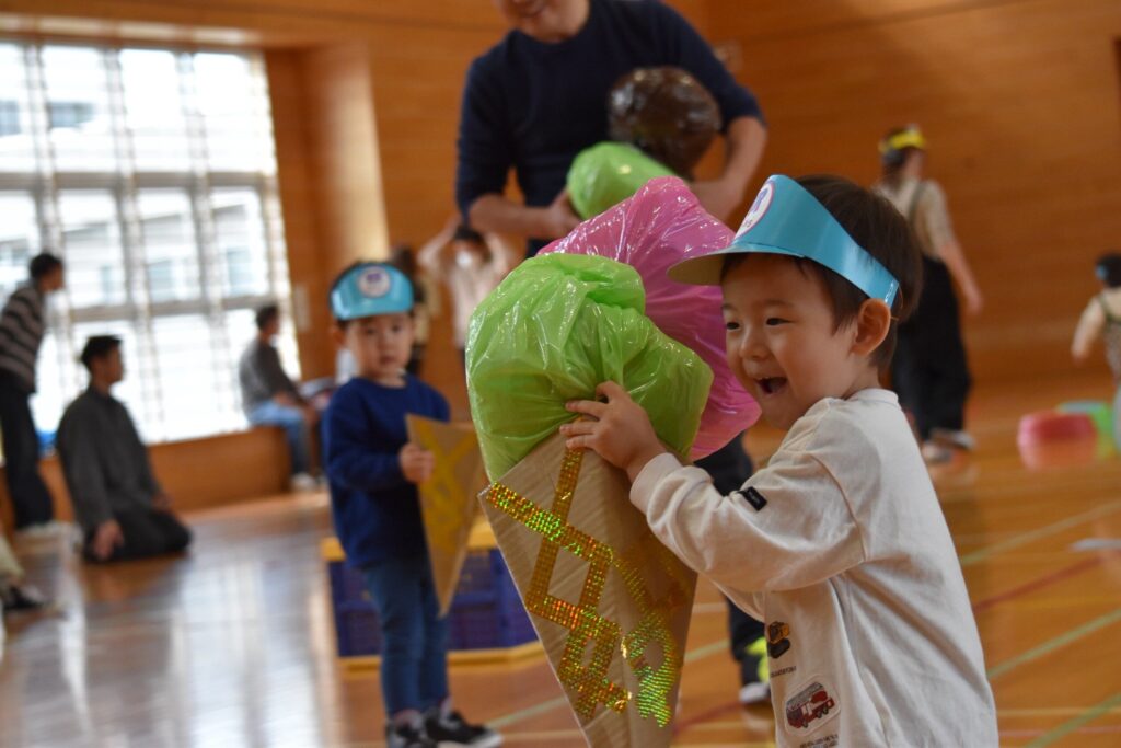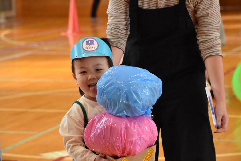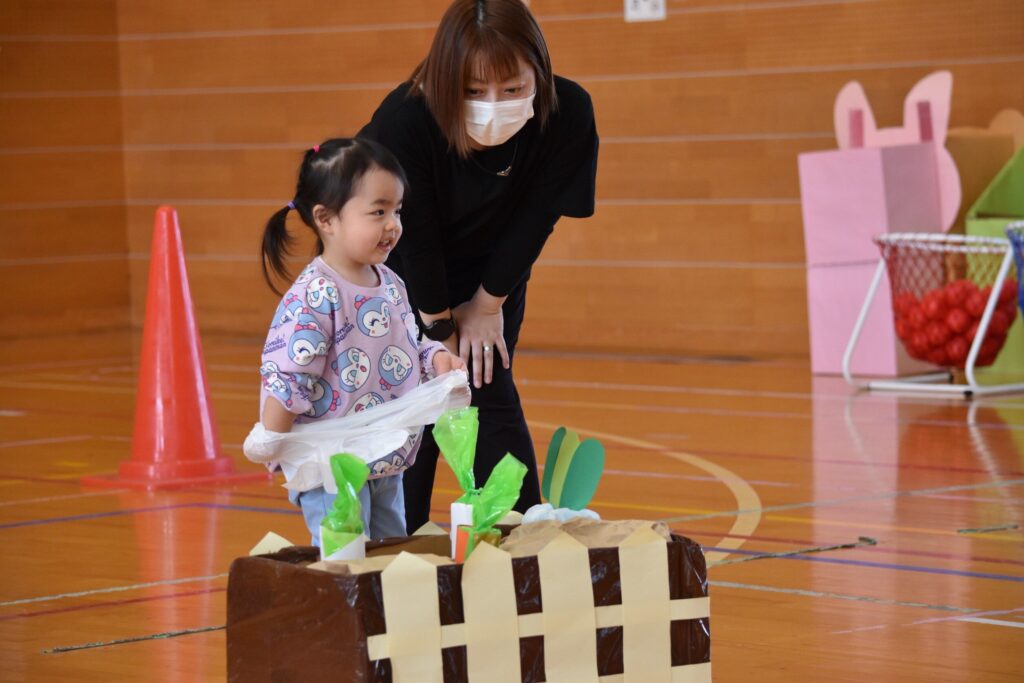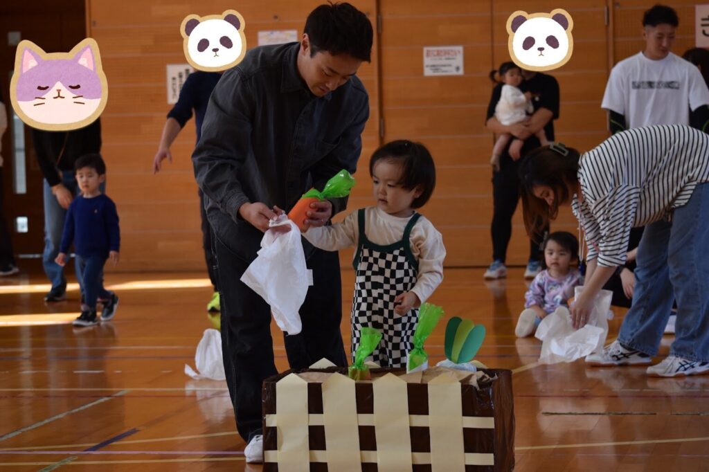 7、2歳児親子競技「おまたせしましたー!おやこ愛♡スクリーム」