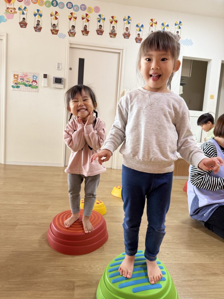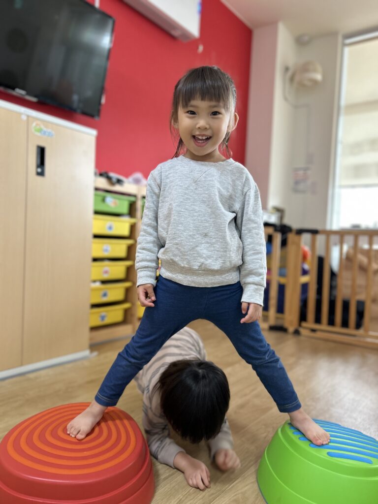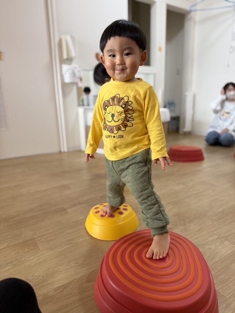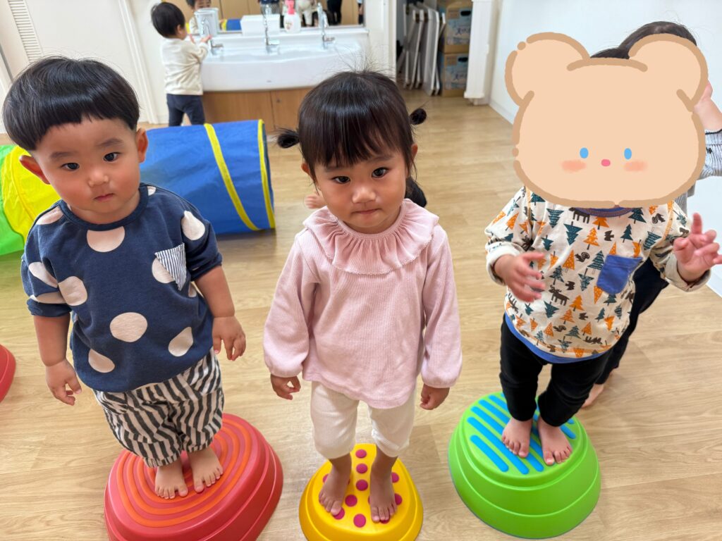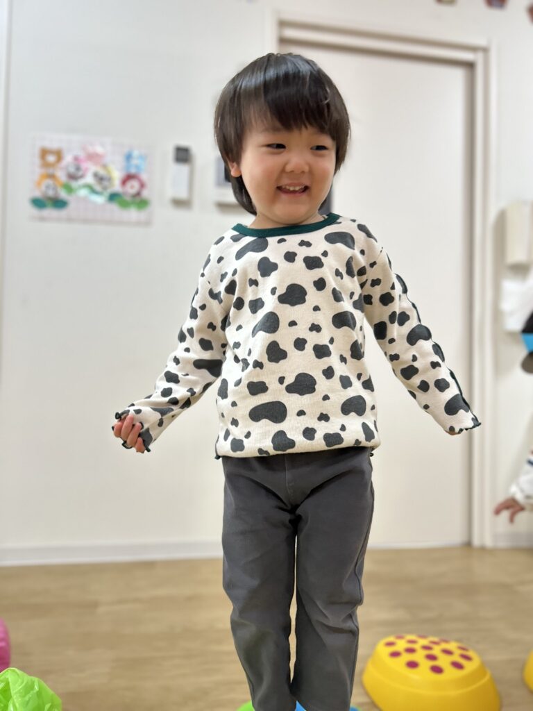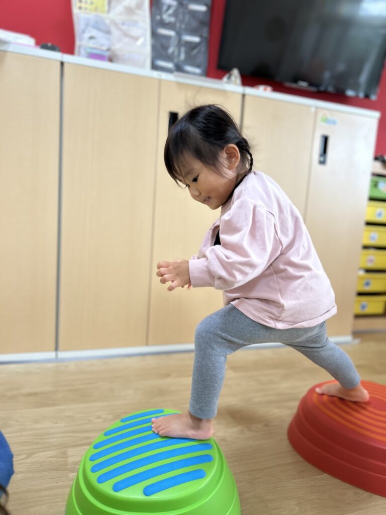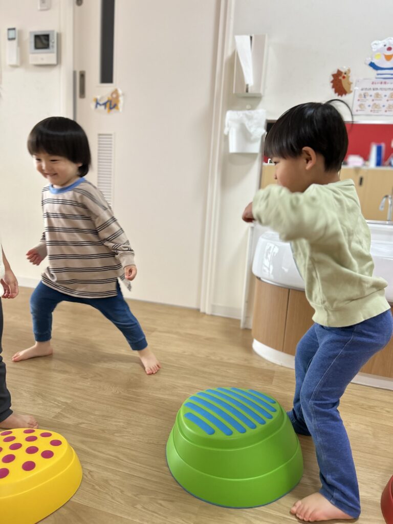 最初は怖がっていたお友だちも何回かやって行くとスーイスイ!トントントン♫とっても上手にバランスを取って楽しく遊べるようになりました🙌✨