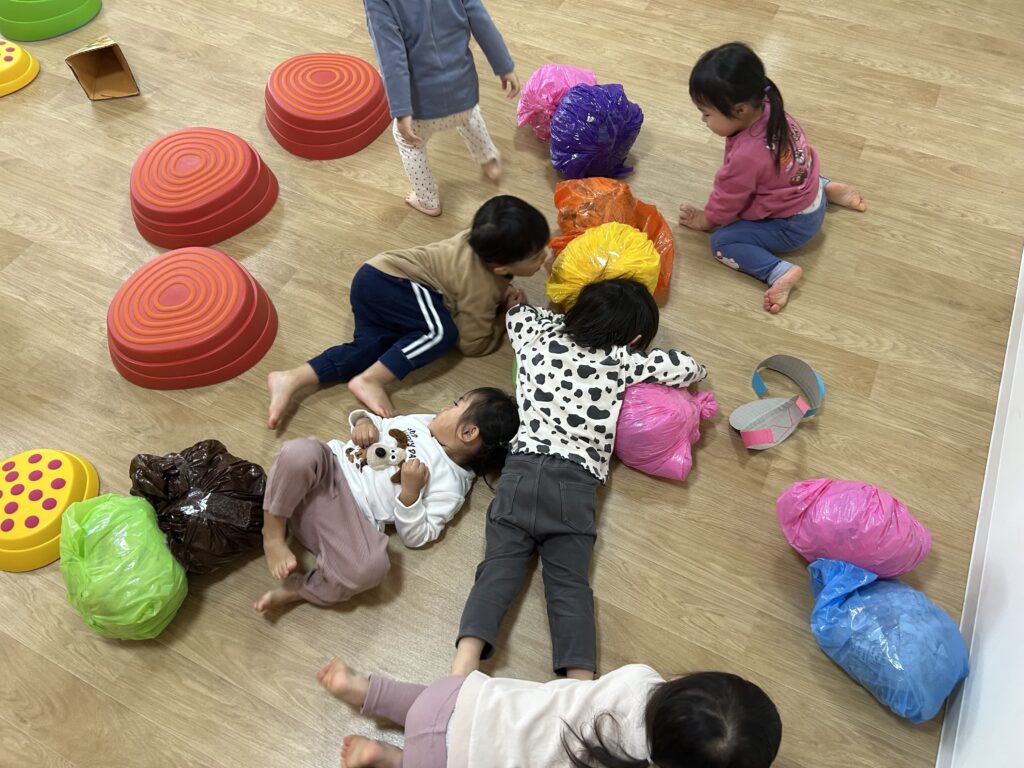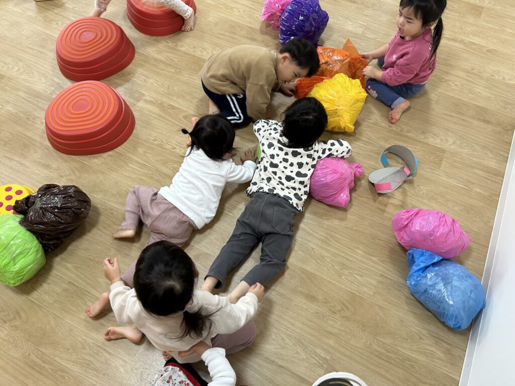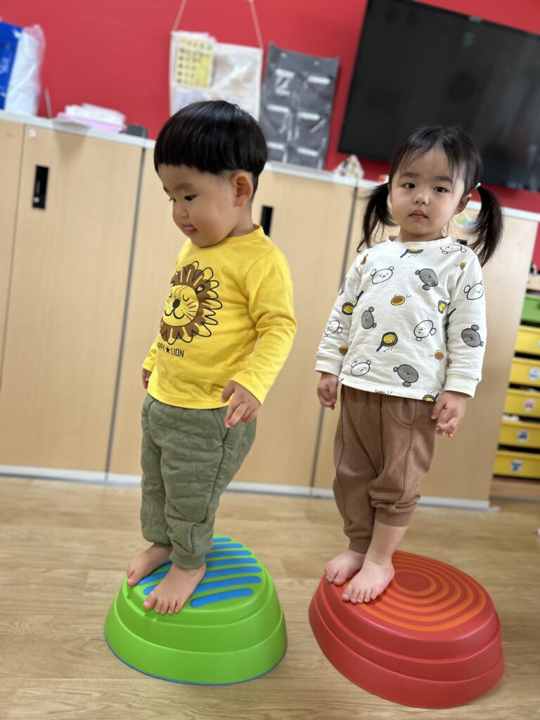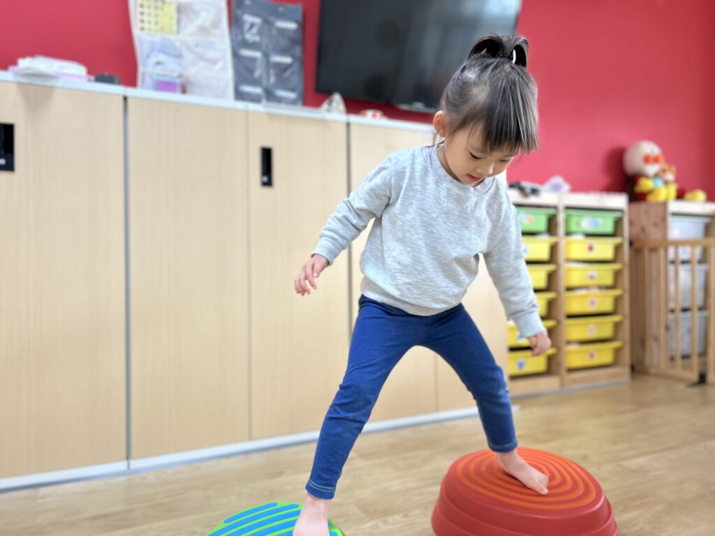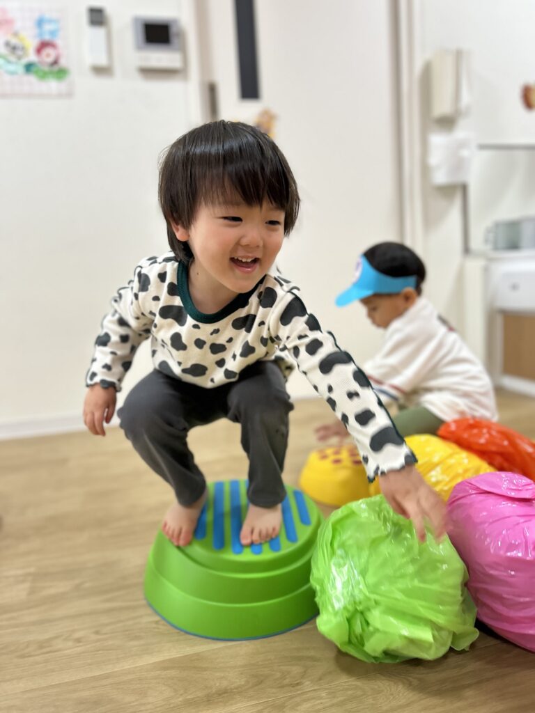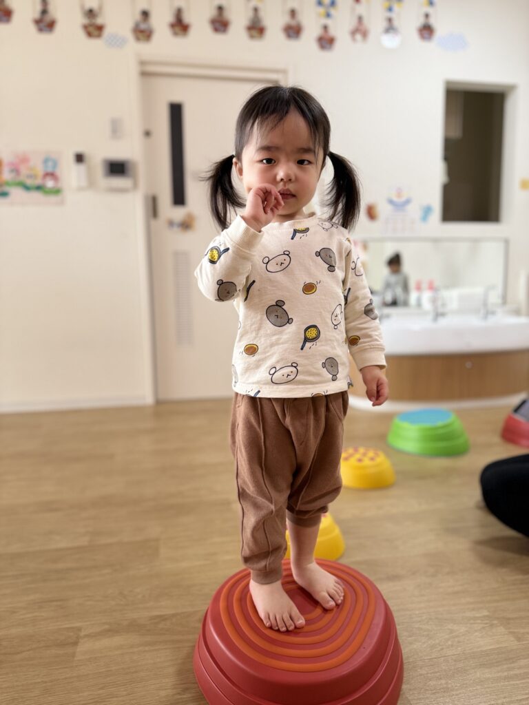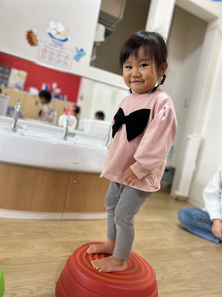 最初は怖がっていたお友だちも何回かやって行くとスーイスイ!トントントン♫とっても上手にバランスを取って楽しく遊べるようになりました🙌✨