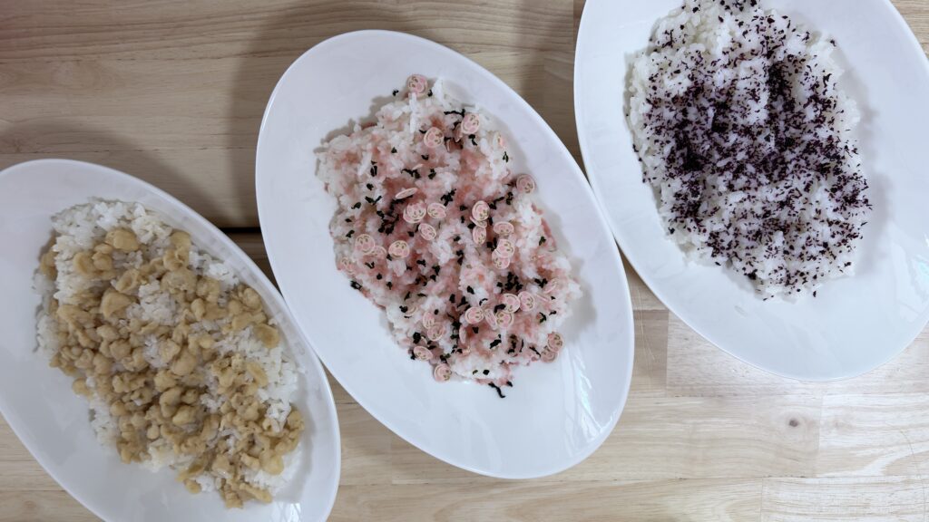 3種類から好きな具を選んでおにぎりを作りました🍙♫